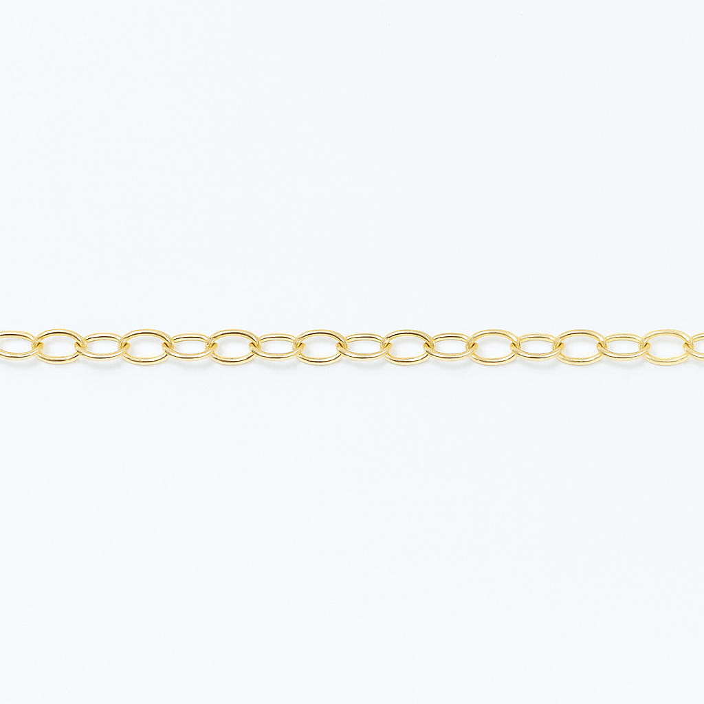 Cadena clásica de eslabones ovalados finos en tono dorado brillante, perfecta para crear collares, pulseras, tobilleras y más. Su diseño ligero y versátil permite combinarla fácilmente con dijes, cuentas o usarla como base minimalista. Ideal para proyectos de joyería artesanal o producción al por mayor.