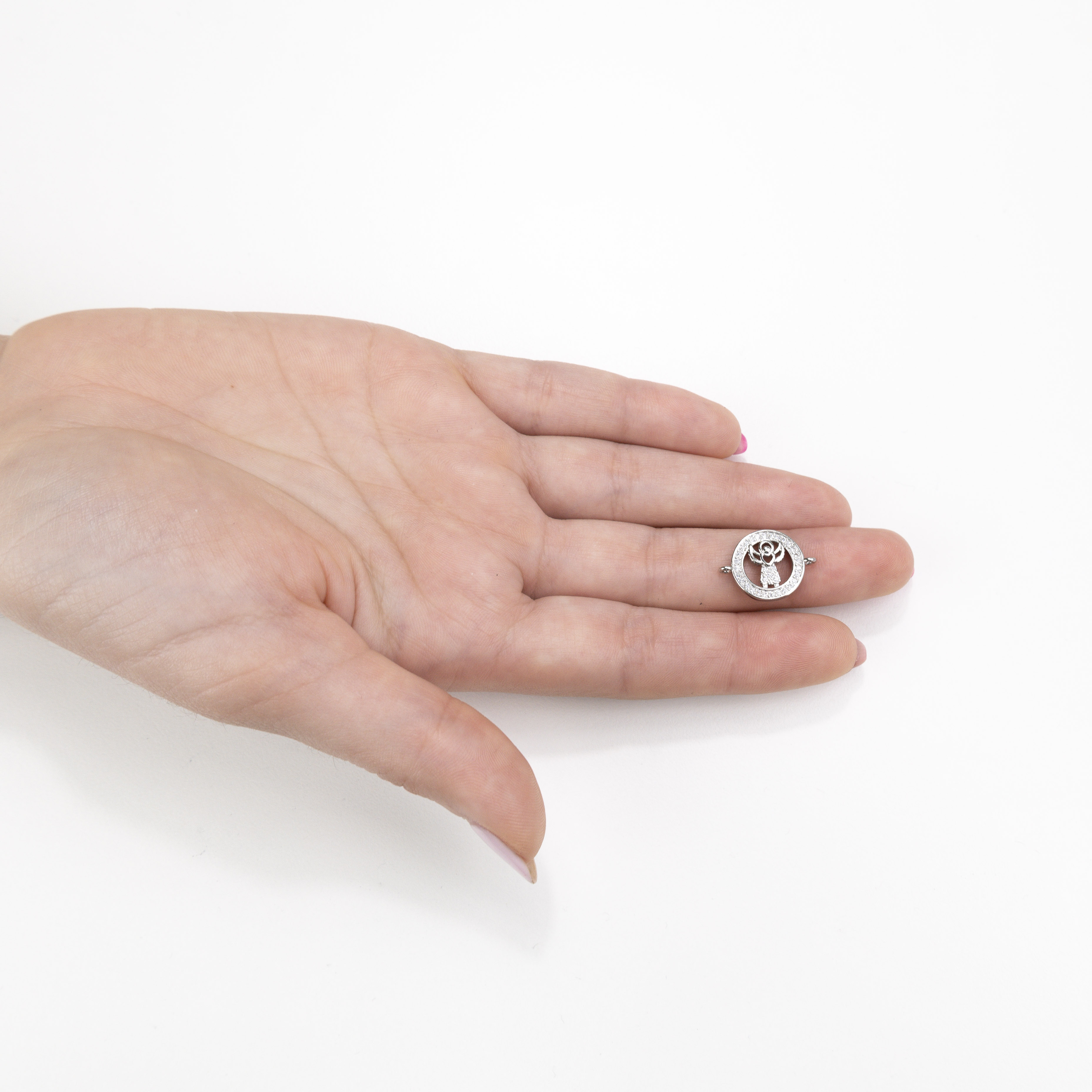 Conector Redondo de Ángel Plateado con Micro Pavé Transparente