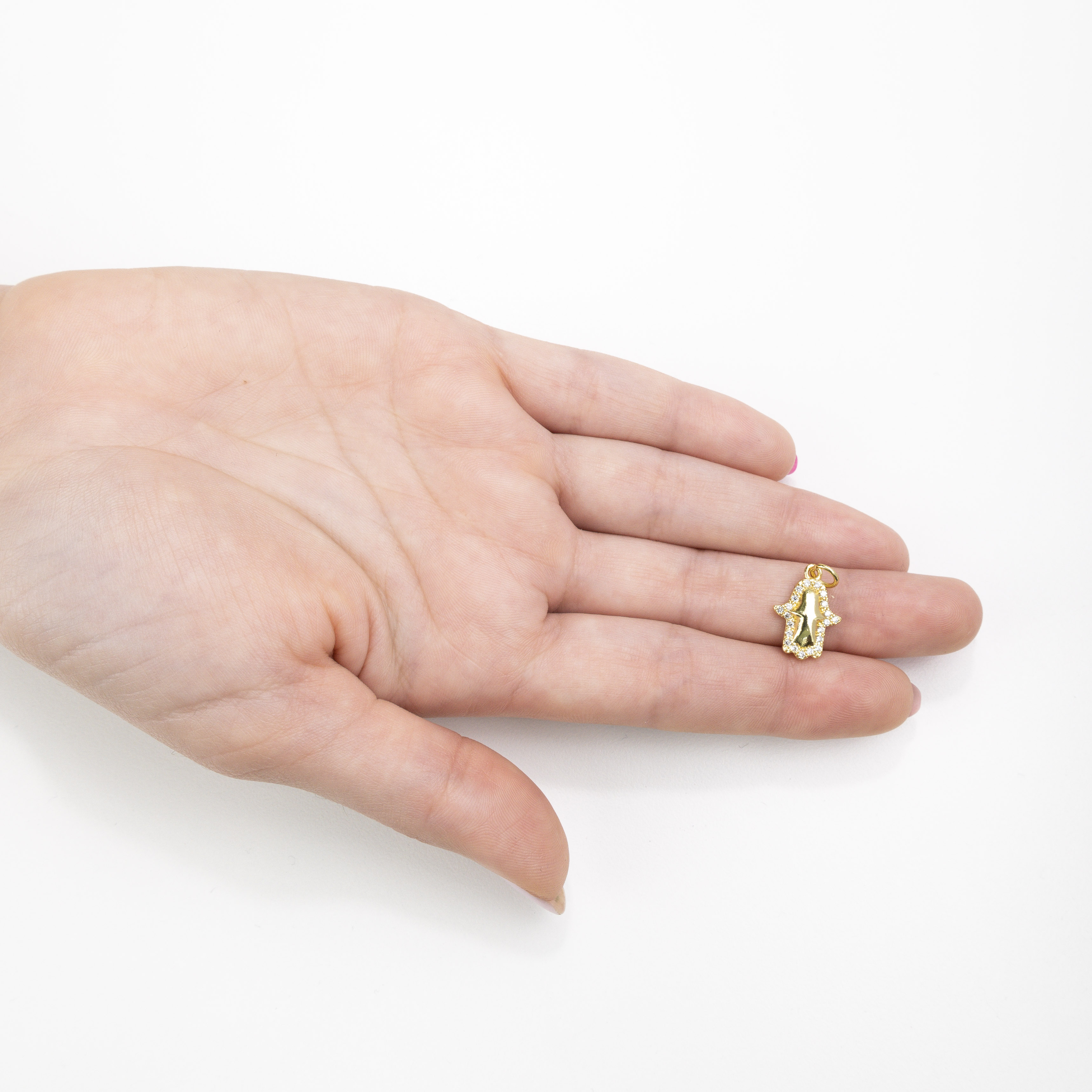Dije Hamsa de Oro con Cristal Transparente