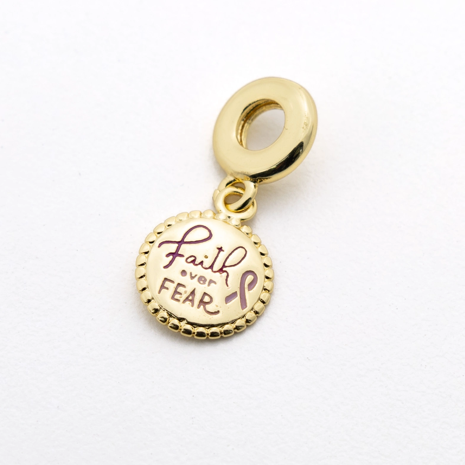 Muestra tu apoyo y solidaridad con el dije chapado en oro de 18k Faith Over Fear (Fe sobre el Miedo), que simboliza la valiente batalla contra el cáncer de mama. Este dije encarna un mensaje conmovedor, lo que lo convierte en un emblema ideal para supervivientes, luchadoras y quienes les apoyan. Ya sea para crear un collar, una pulsera u otra pieza personalizada, este dije sirve como un emotivo recordatorio de la resiliencia, la esperanza y el espíritu inquebrantable de quienes se ven afectados por el cáncer de mama.