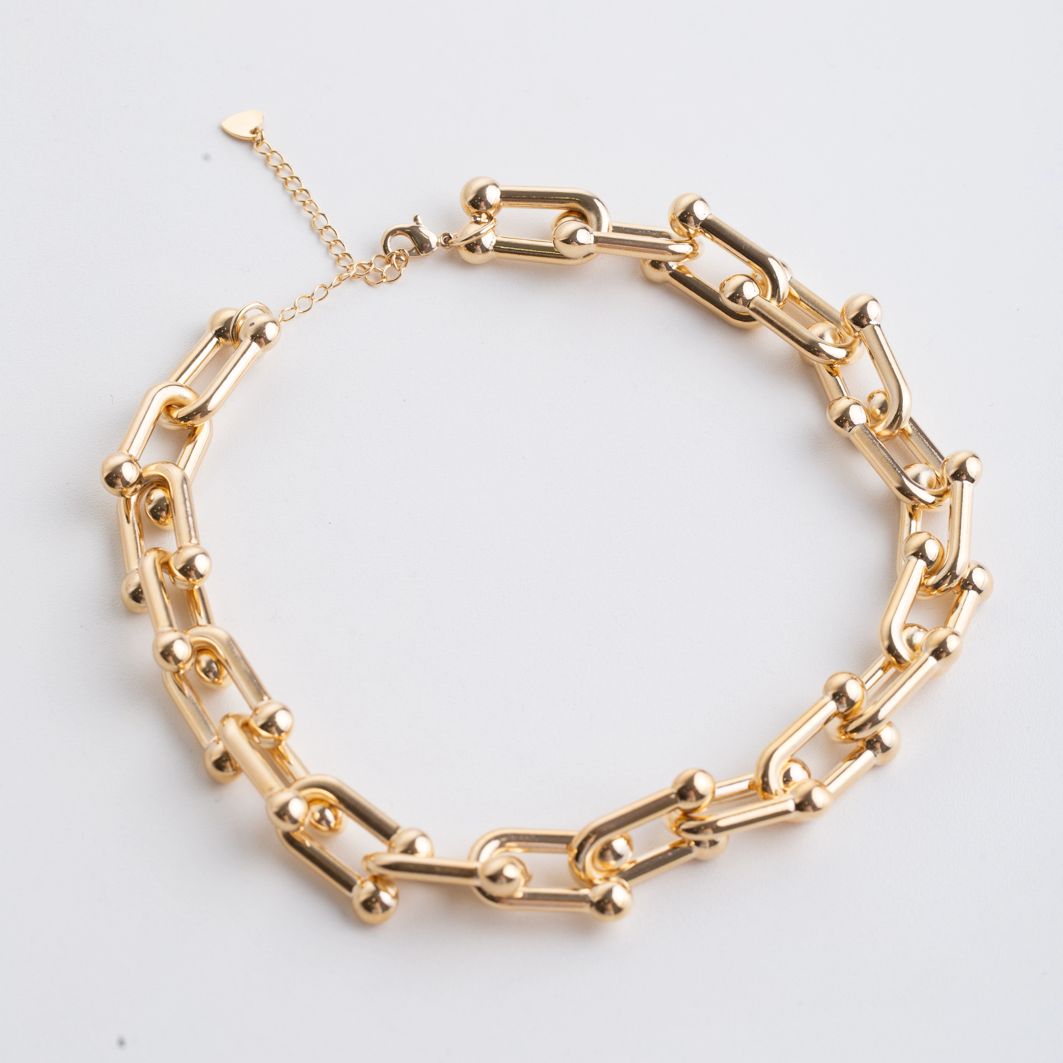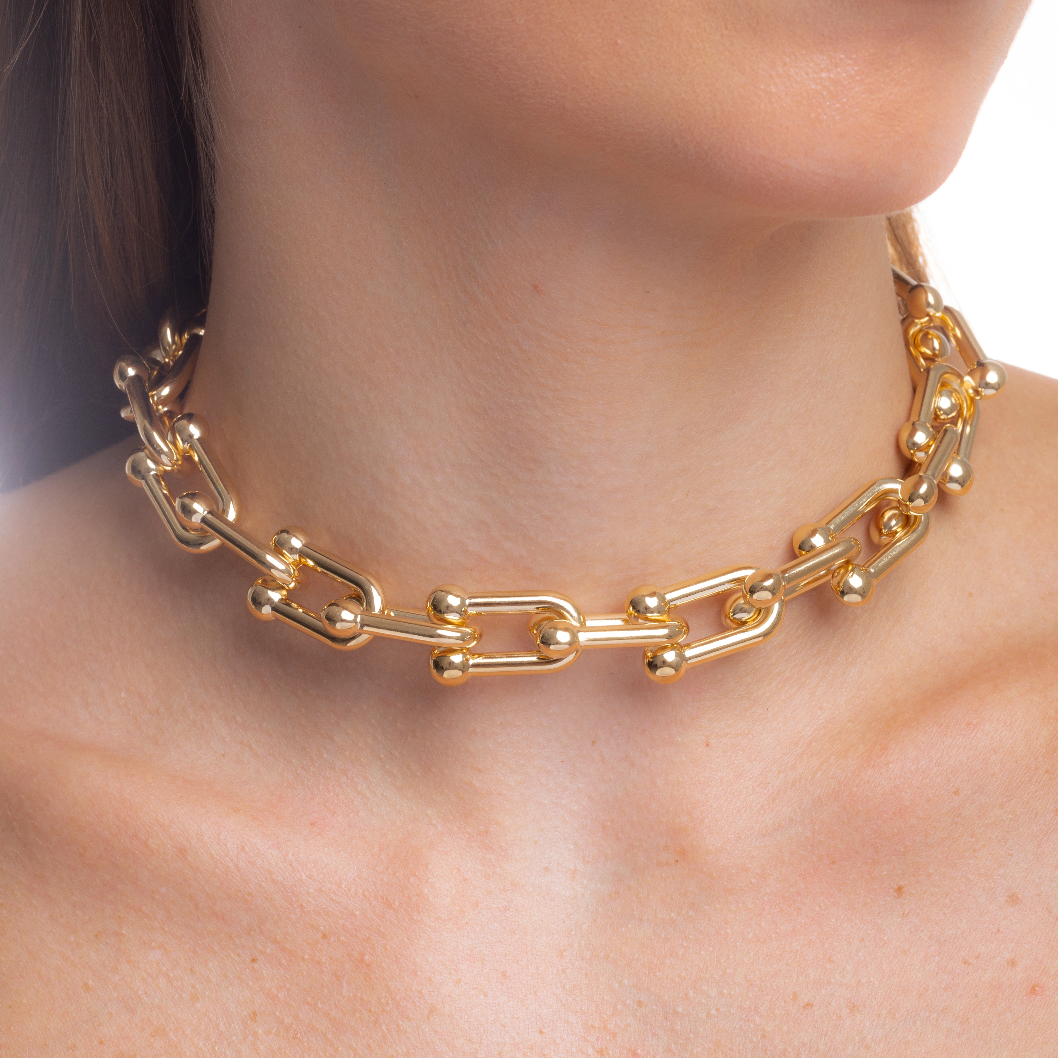 Acentúa tu elegancia con nuestro Collar de Eslabones Orbitales Dorados bañados en Oro de 18K. Esta distinguida pieza presenta una serie de bucles entrelazados, cada uno adornado con una esfera dorada, creando una danza de luz y forma alrededor del cuello. El elegante montaje de eslabones ofrece un ajuste flexible y una caída suave, perfecto para añadir un toque de sofisticación a cualquier conjunto.