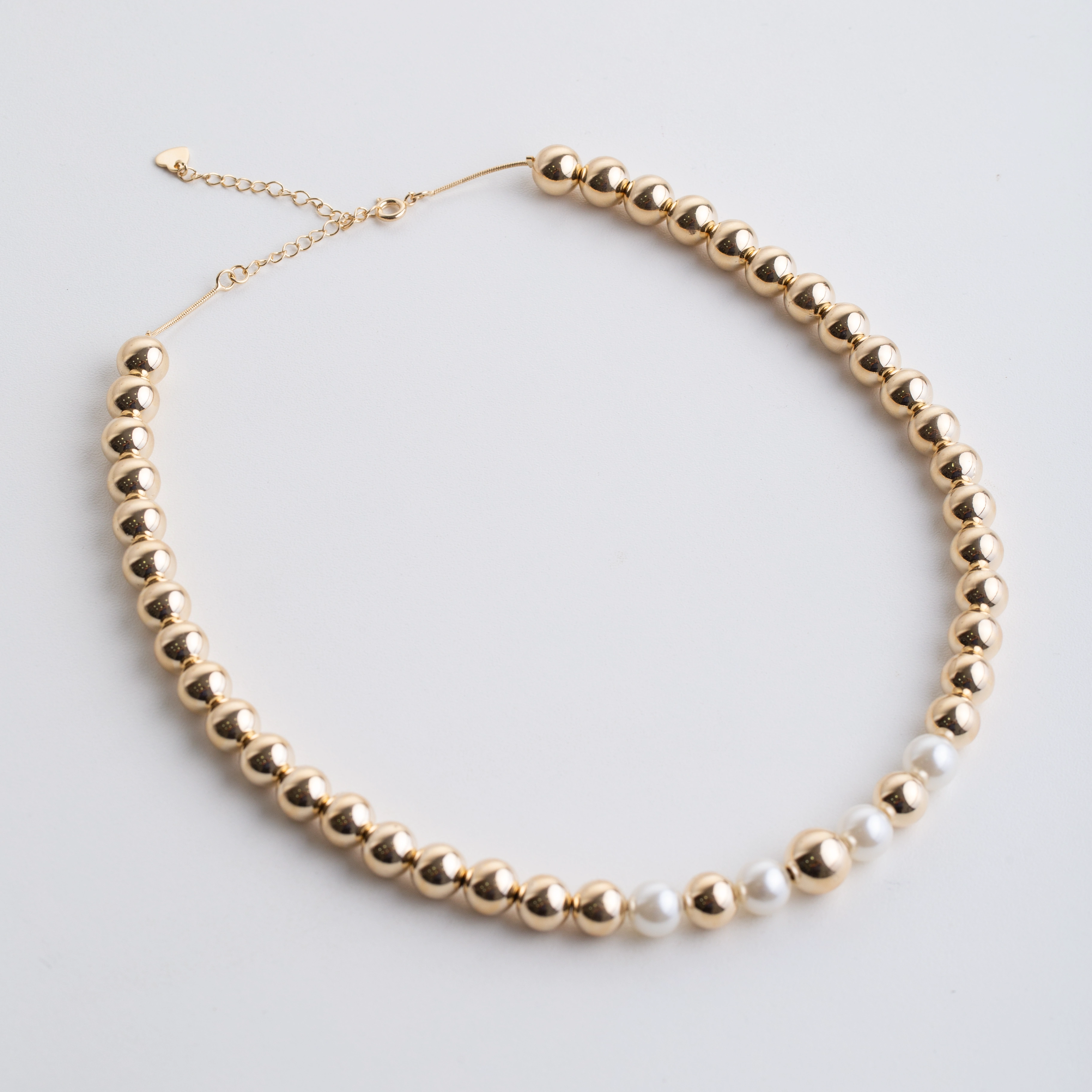 Collar de Bolas Doradas y Perlas de 10mm 18