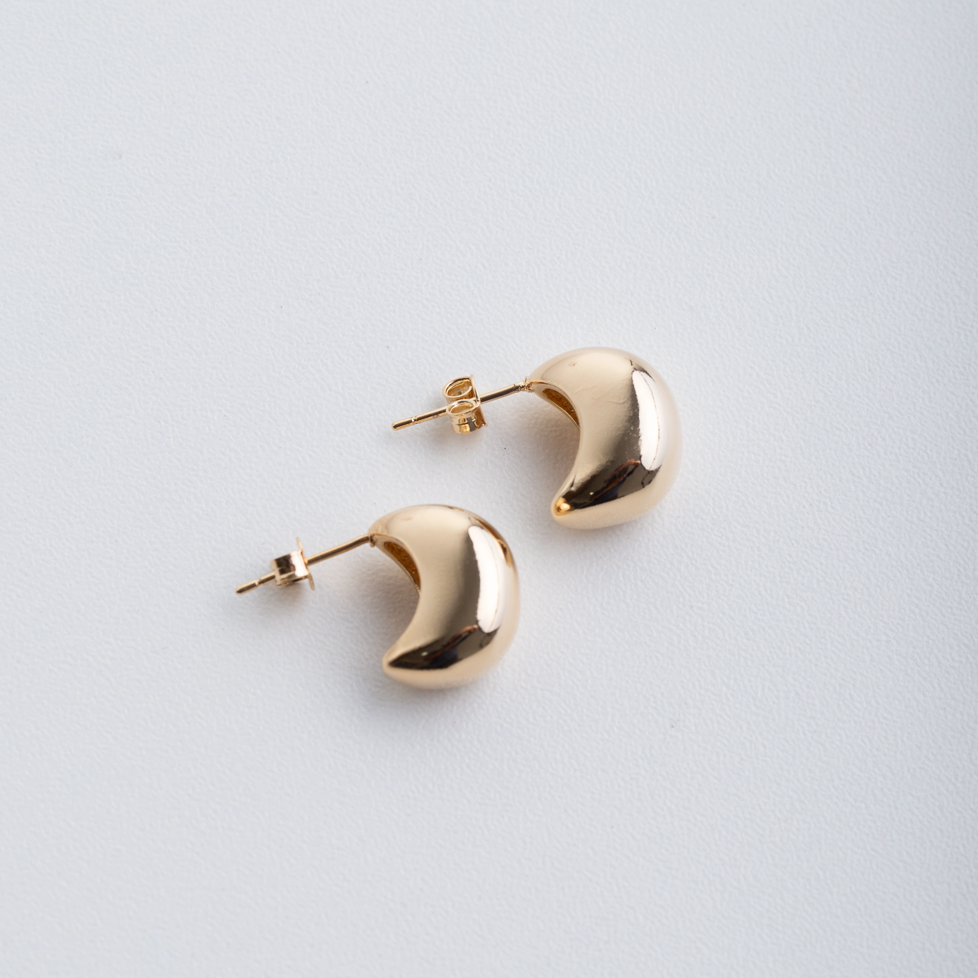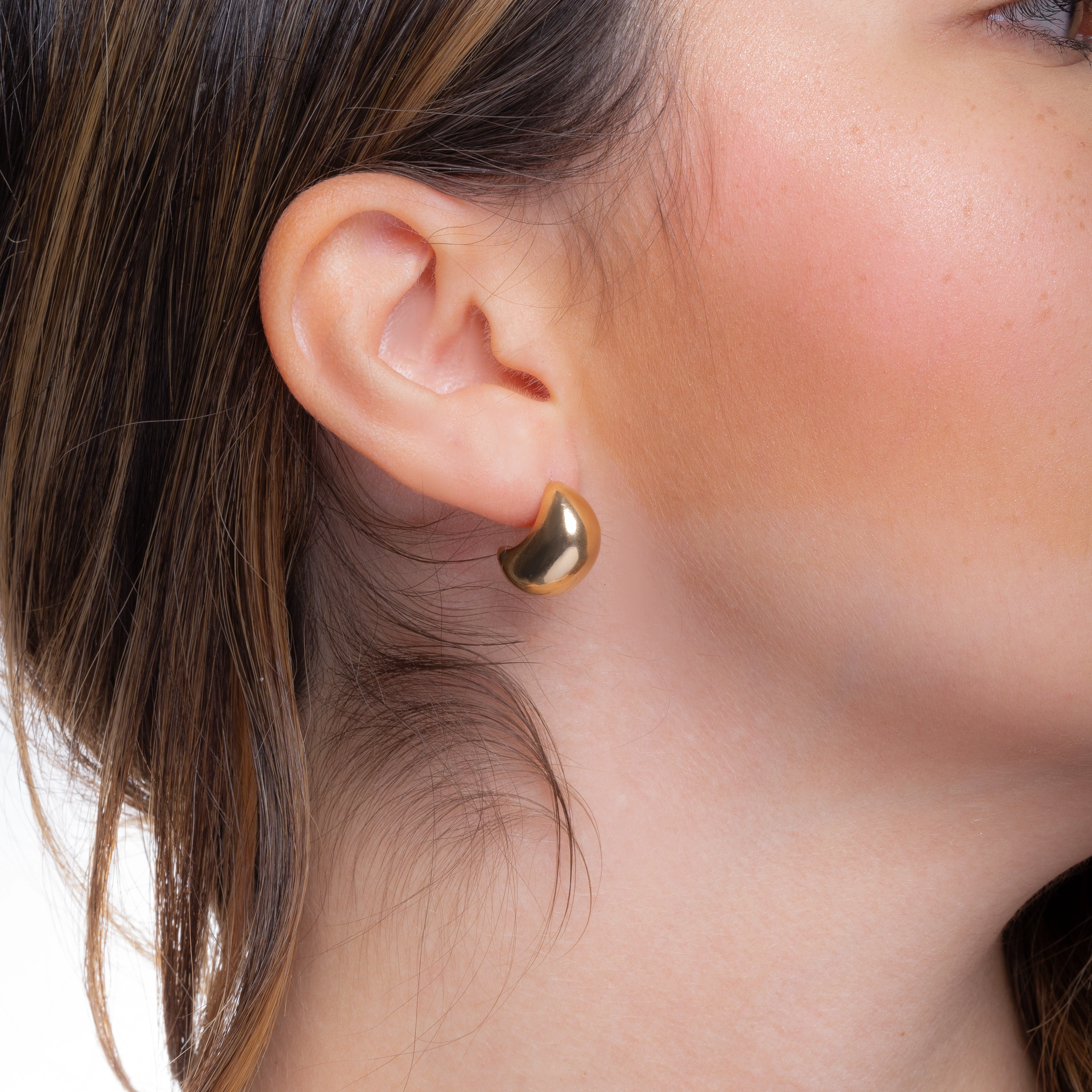 Estos pendientes de cúpula de oro pulido son una muestra de belleza escultural, con un diseño suave y redondeado que refleja la luz con un brillo cautivador. La estética audaz pero minimalista de los pendientes los convierte en un accesorio versátil para cualquier ocasión. Ya sea combinado con un atuendo informal de día o un elegante vestido de noche, estos pendientes añaden un toque de sofisticación y estilo moderno a cualquier look.
