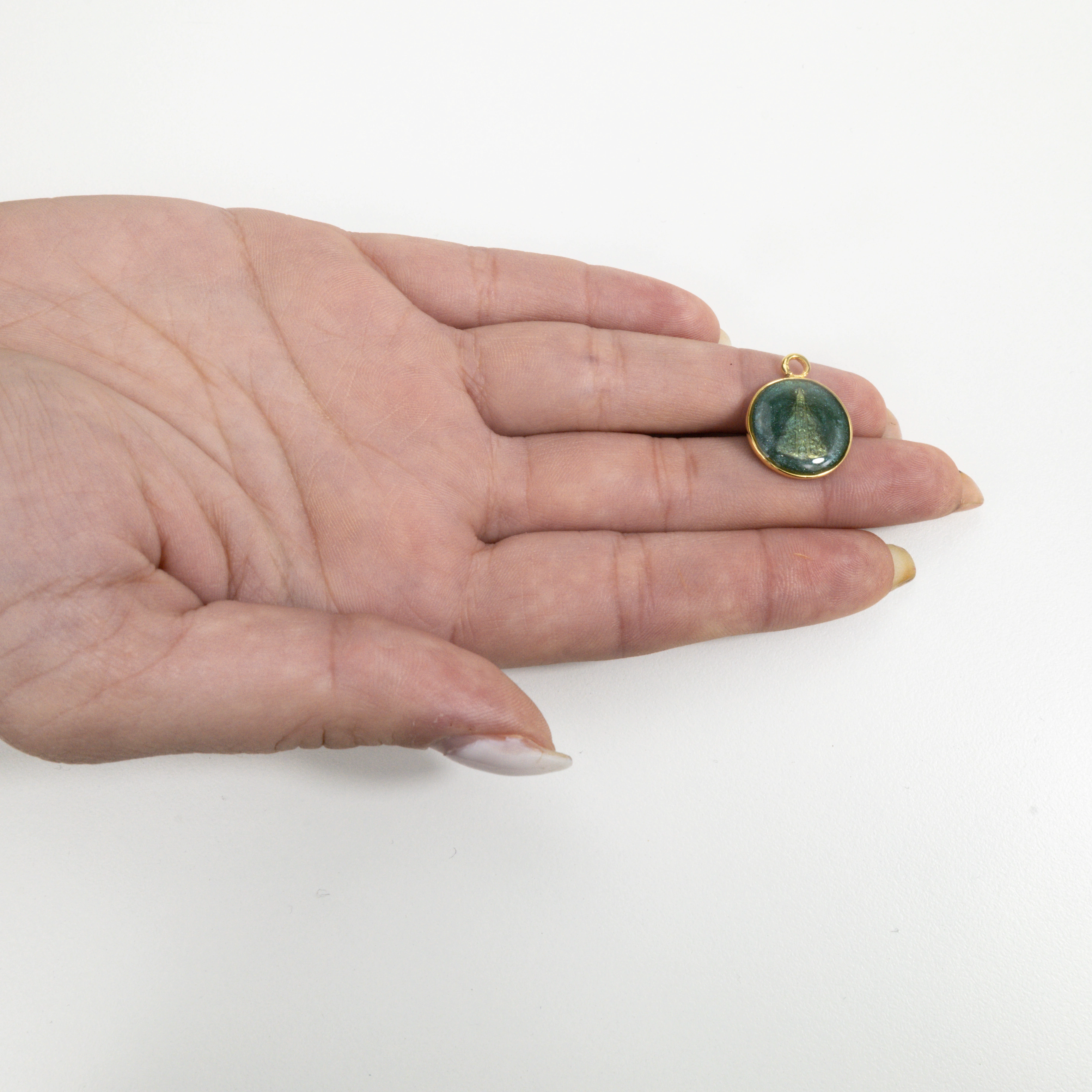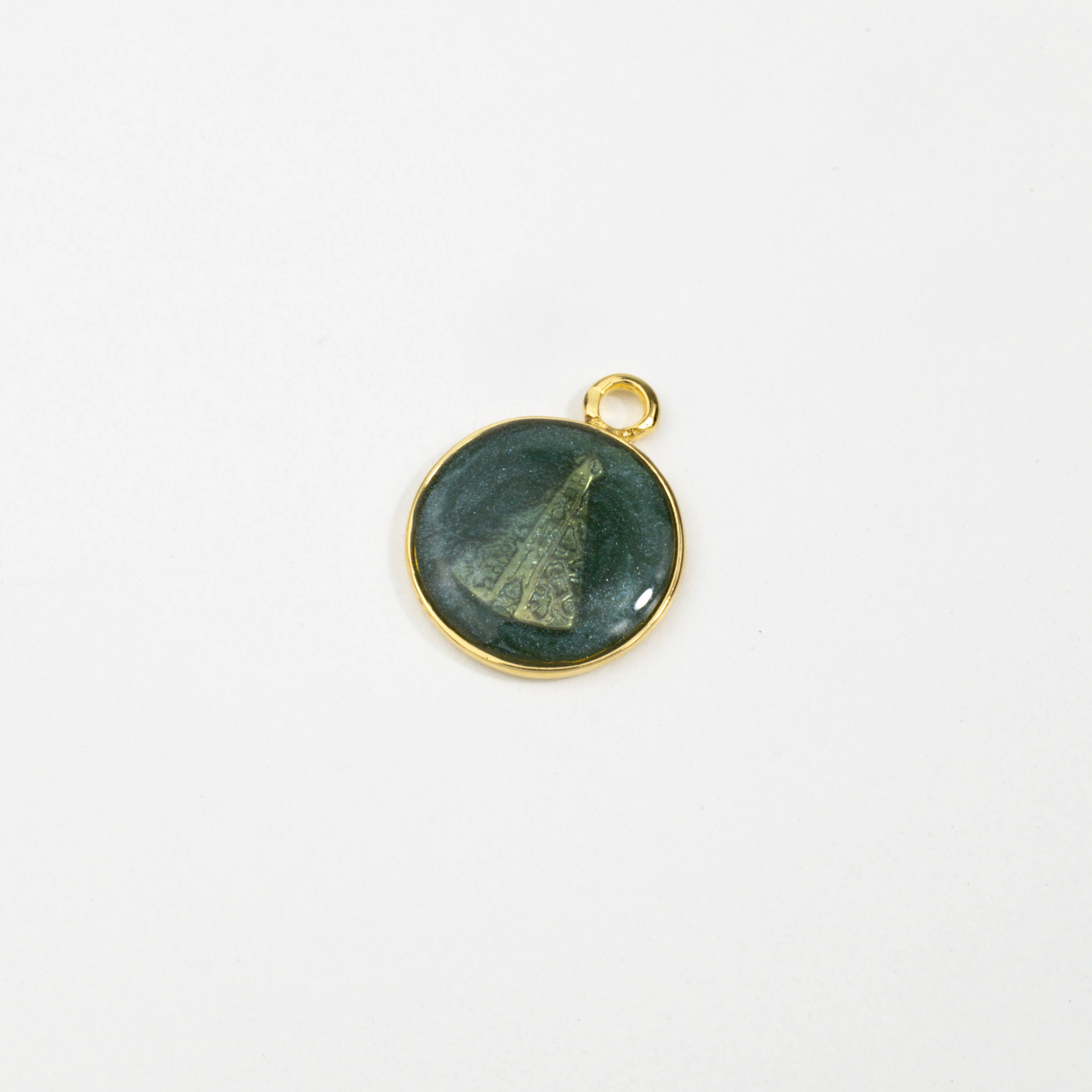 Este exquisito colgante presenta una representación de la Virgen del Valle, también conocida como Nuestra Señora del Valle, rodeada por un marco ornamentado y de intrincado diseño.
