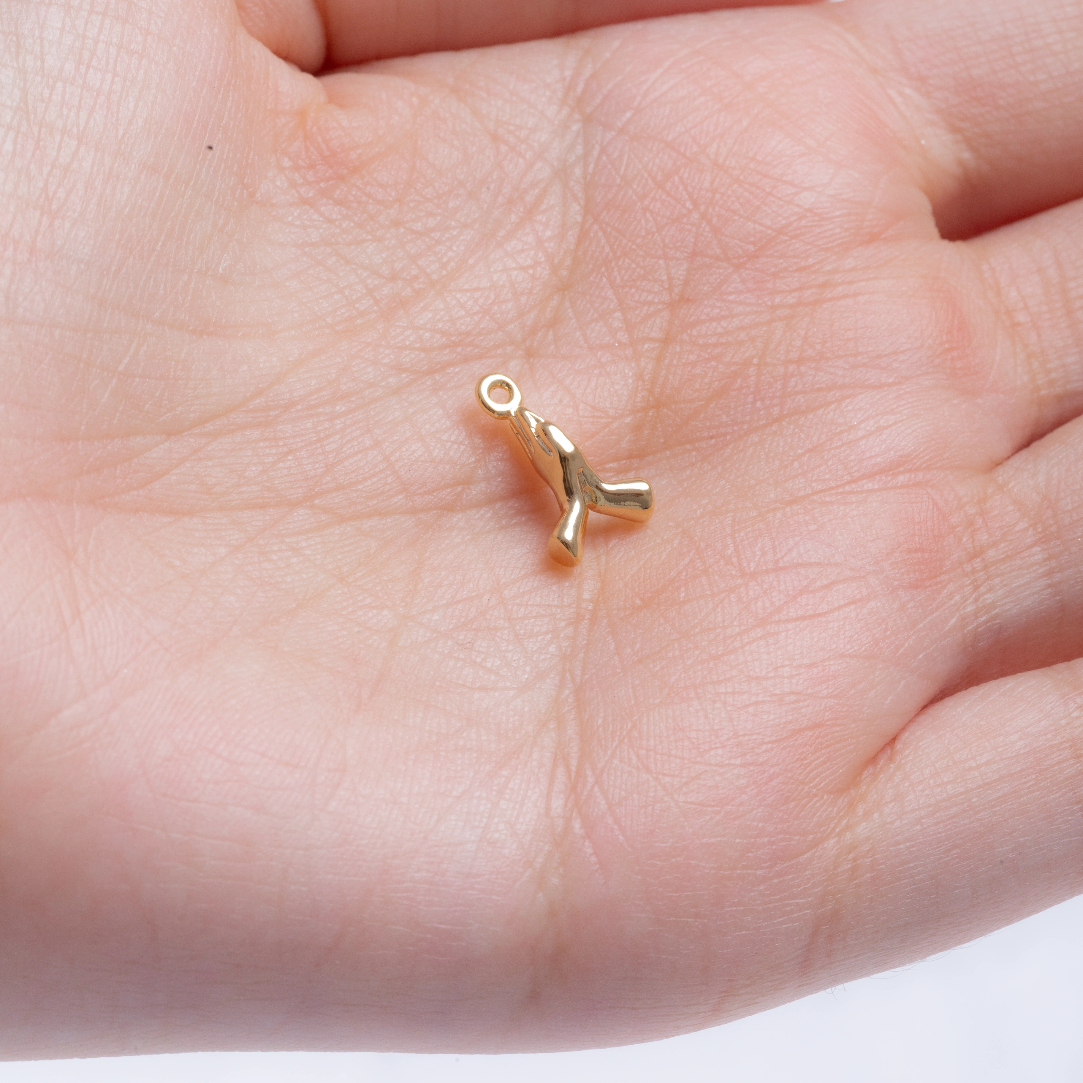 Este delicado dije presenta dos manos unidas en un gesto atemporal de oración. Bañado en oro de 18k, sirve como un sereno recordatorio de fe y devoción. Ya sea añadido a una pulsera o usado como collar, esta pieza es una hermosa expresión de esperanza y conexión espiritual.