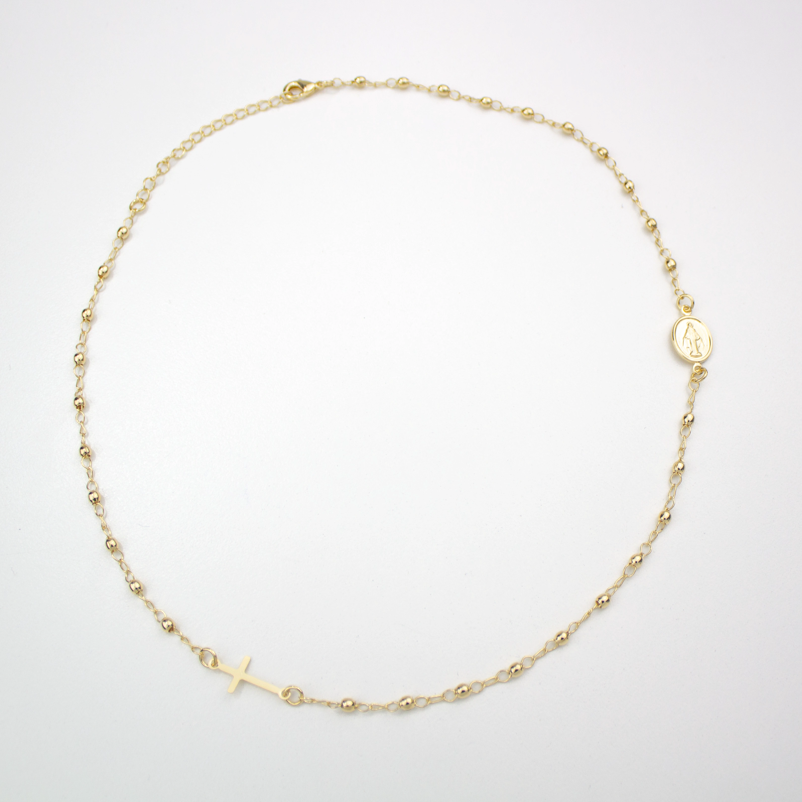 Conéctate con tu fe de una manera moderna con nuestro Rosario de Cadena Devocional Atesorado. Esta elegante pieza transforma el rosario tradicional en un accesorio contemporáneo que se puede usar a diario. Elaborado con lustroso baño de oro de 18k, cada eslabón de la cadena conduce a una oración y reflexión significativas. Un recuerdo valioso para uno mismo o un regalo sincero para un ser querido.