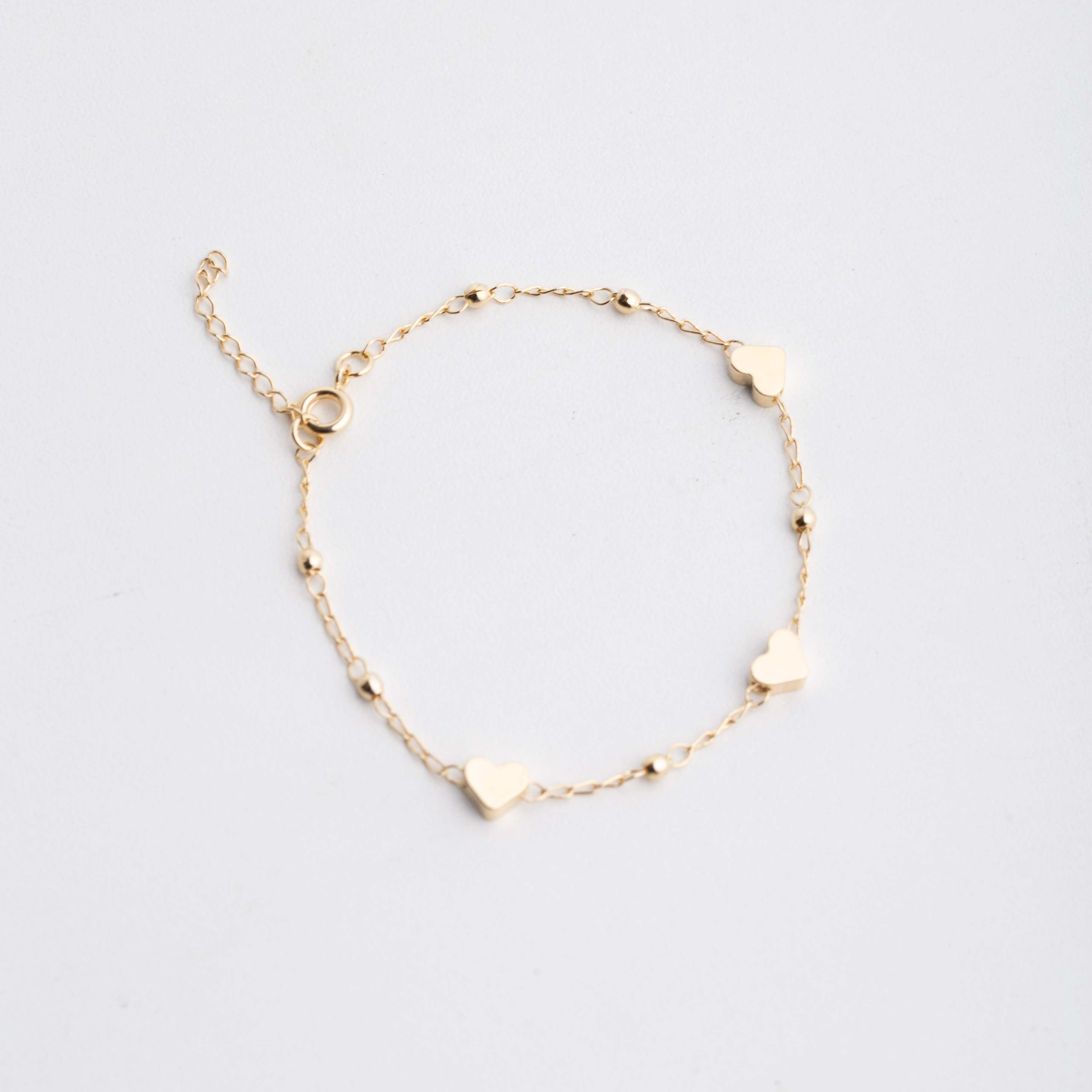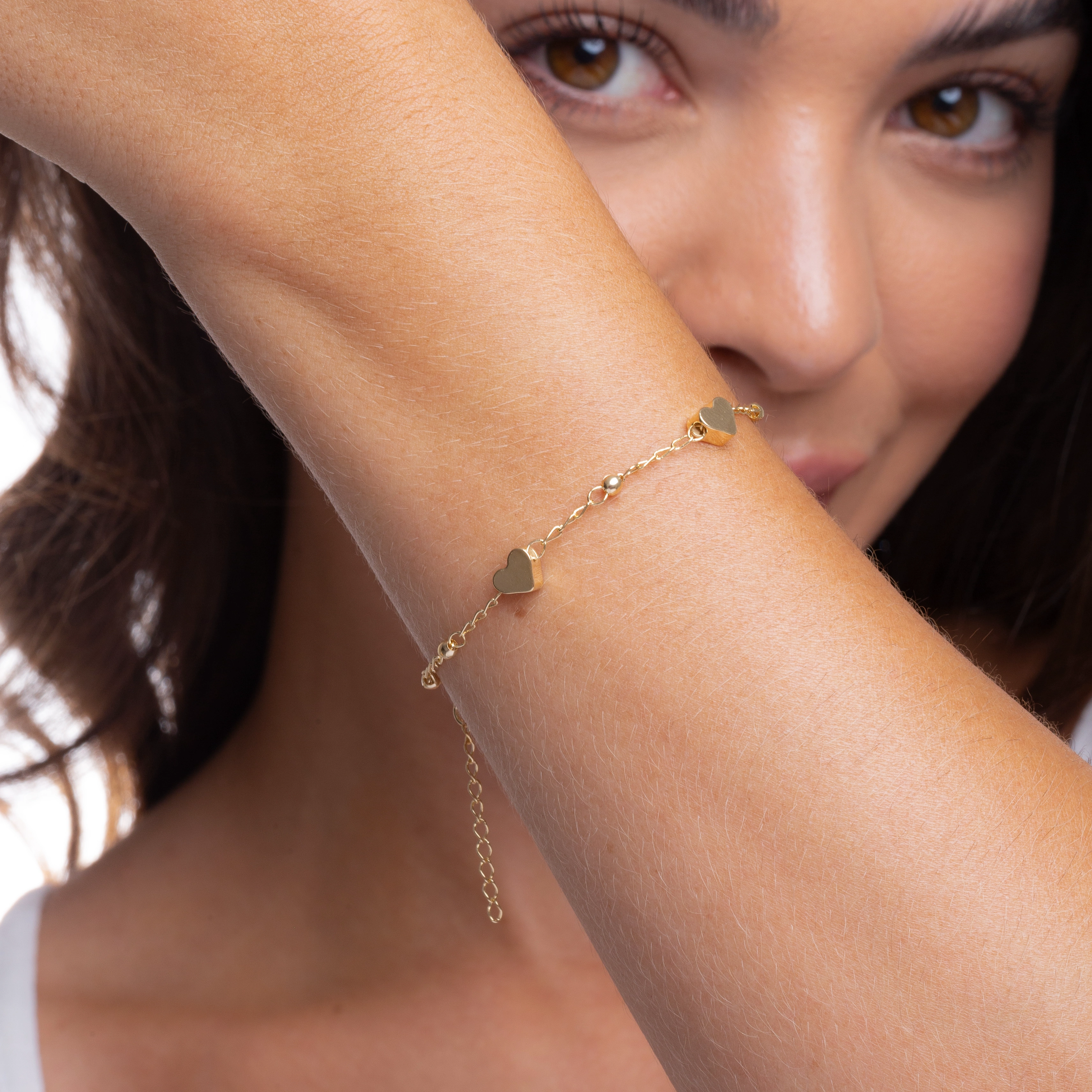 Encanto y atractivo con esta delicada pulsera adornada con charms en forma de corazón. Perfectos para añadir un toque de ternura y sofisticación a cualquier outfit, estos accesorios son ideales para cualquier ocasión. Con un diseño minimalista y elegante, cada pieza destaca por su brillo dorado y finos detalles, proporcionando un complemento perfecto para expresar amor y aprecio.
