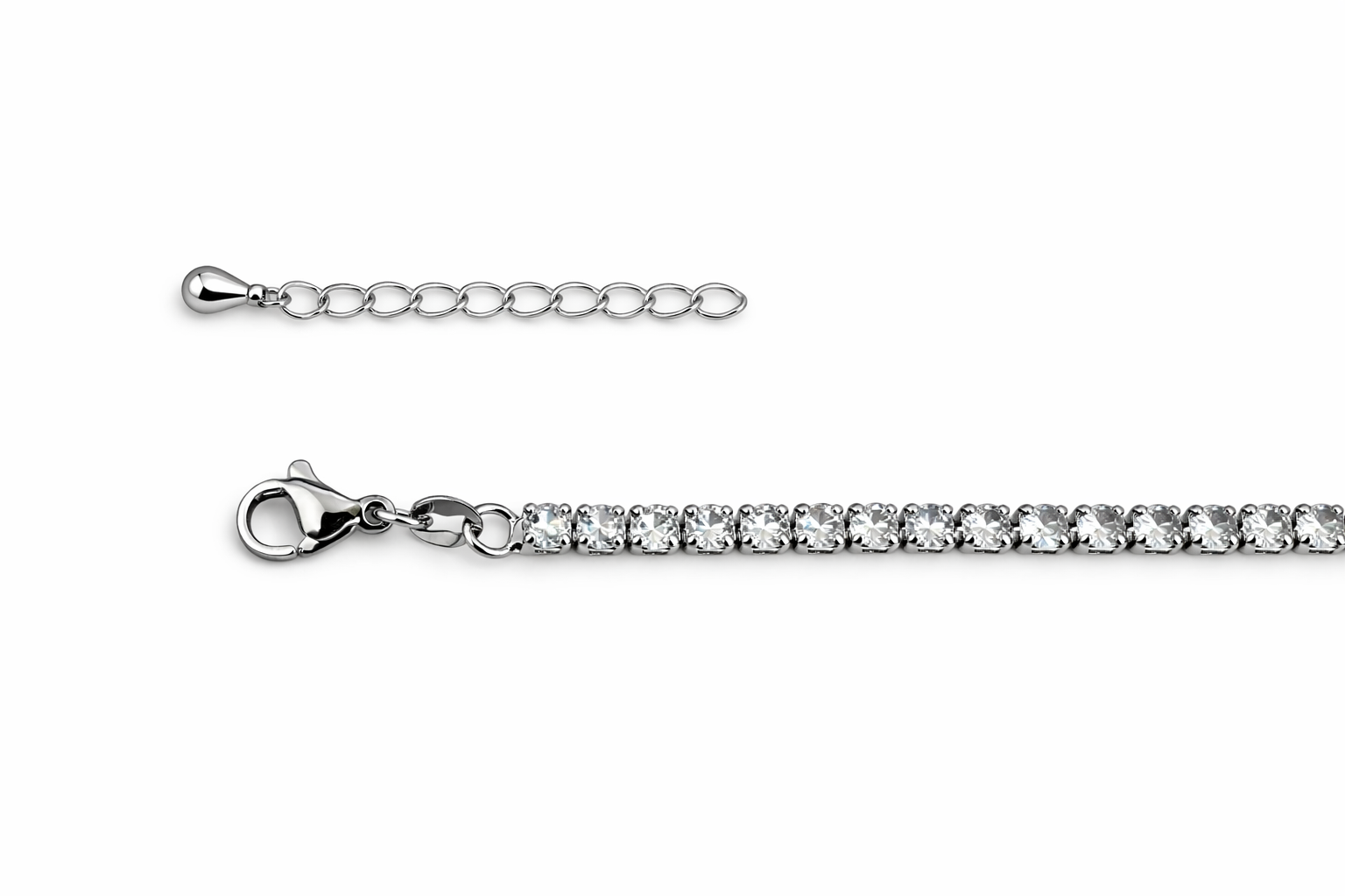 Cadena Tennis Silver 13" con Cristales Clear