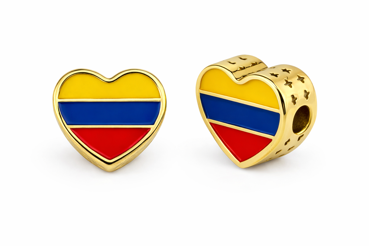 Dije Pasador Corazon Dorado con Bandera de Colombia