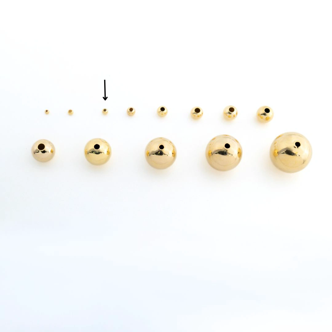Estas cuentas chapadas en oro de 18k y 3mm sirven como elementos esenciales para diseños de joyas, ya sea para collares, pulseras u otras piezas intrincadas. Su brillo radiante y forma uniforme las convierten en una opción preferida para artesanos y diseñadores que buscan calidad y consistencia.