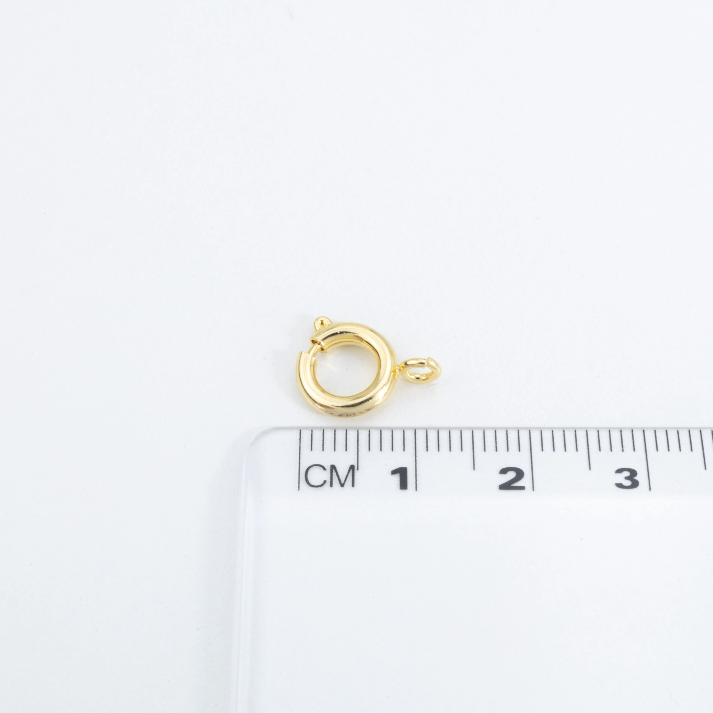 Descubra la fusión perfecta de forma y función con nuestro broche de resorte chapado en oro de 18k. Elaborado con precisión, este broche ofrece una elegante silueta redonda que aporta un toque moderno a cualquier pieza de joyería. El mecanismo de resorte proporciona una sujeción segura, asegurando que sus accesorios permanezcan en su lugar. Su chapado en oro brilla con sofisticación, ideal para crear o reparar collares y pulseras lujosos con un toque contemporáneo.