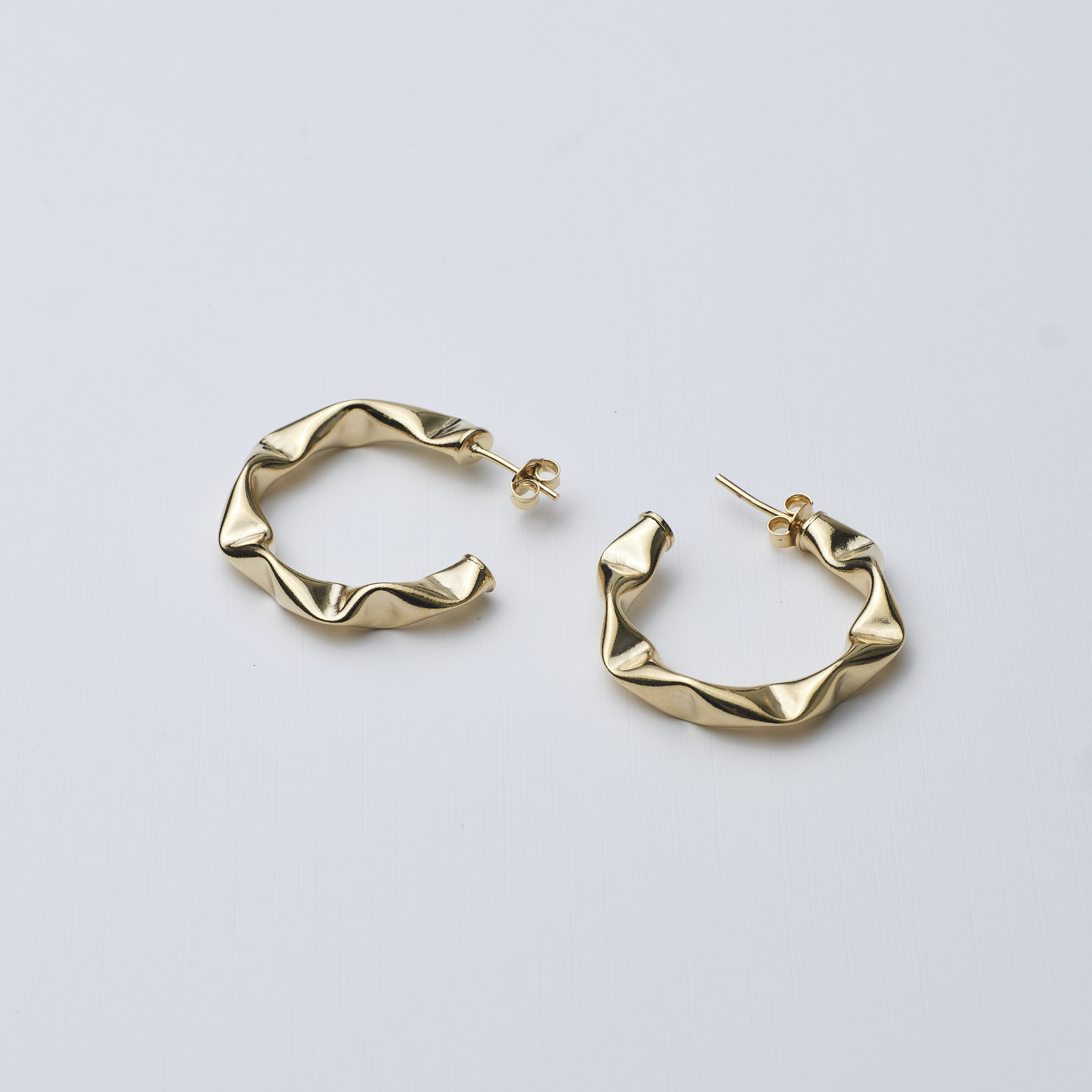 Embrace the essence of sophistication with our Golden Lace Hoop Earrings. Intricately designed with a lace-like pattern and coated with luxurious 18K gold plating.