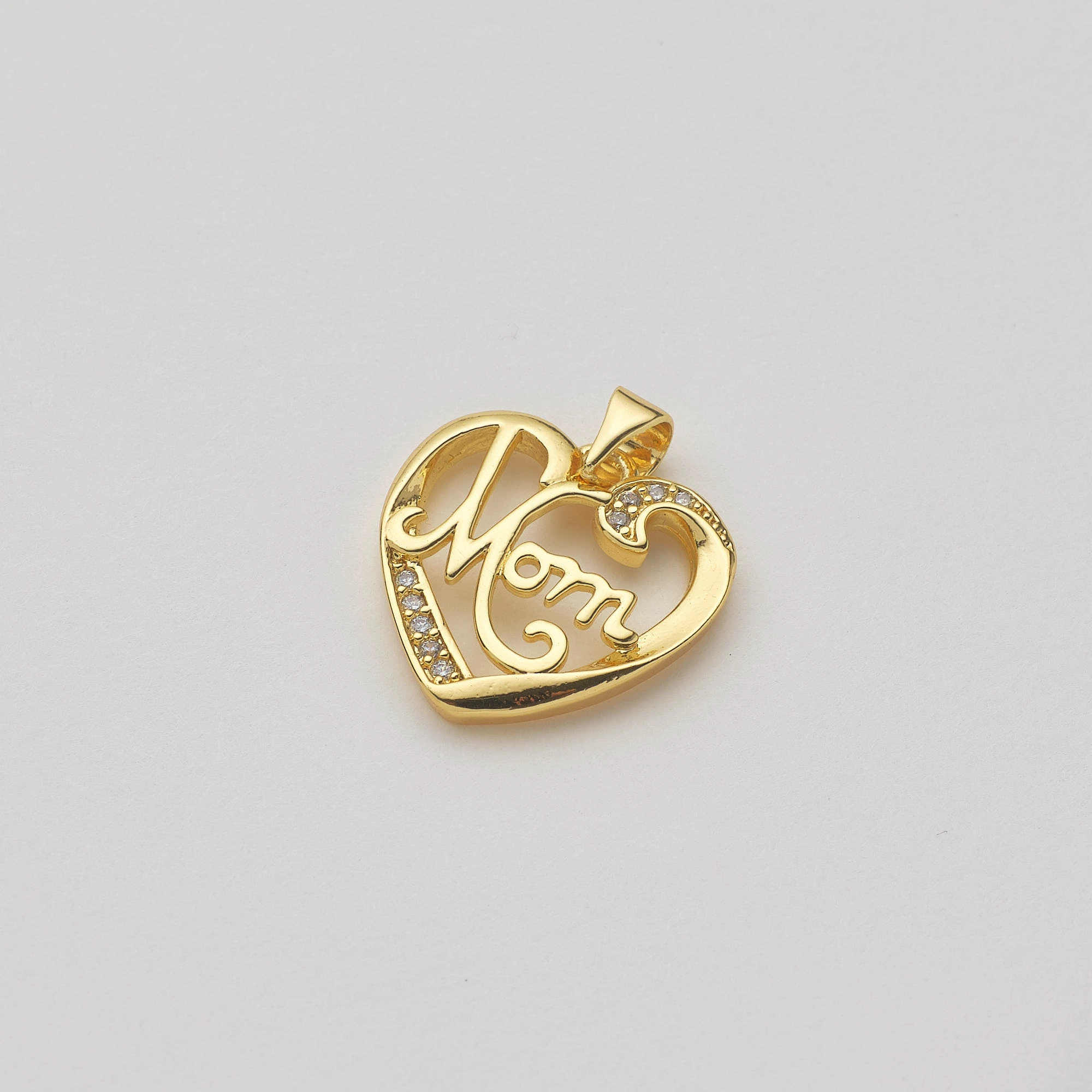 Gold Micropave Heart Mama Pendant