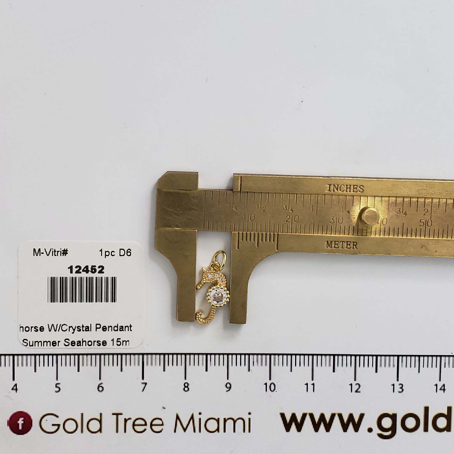 This exquisite pendant captures the graceful essence of the seahorse, accentuated by a sparkling crystal that adds a touch of radiance to its design. Crafted with precision and plated in 18k gold, it's a symbol of elegance and sophistication.