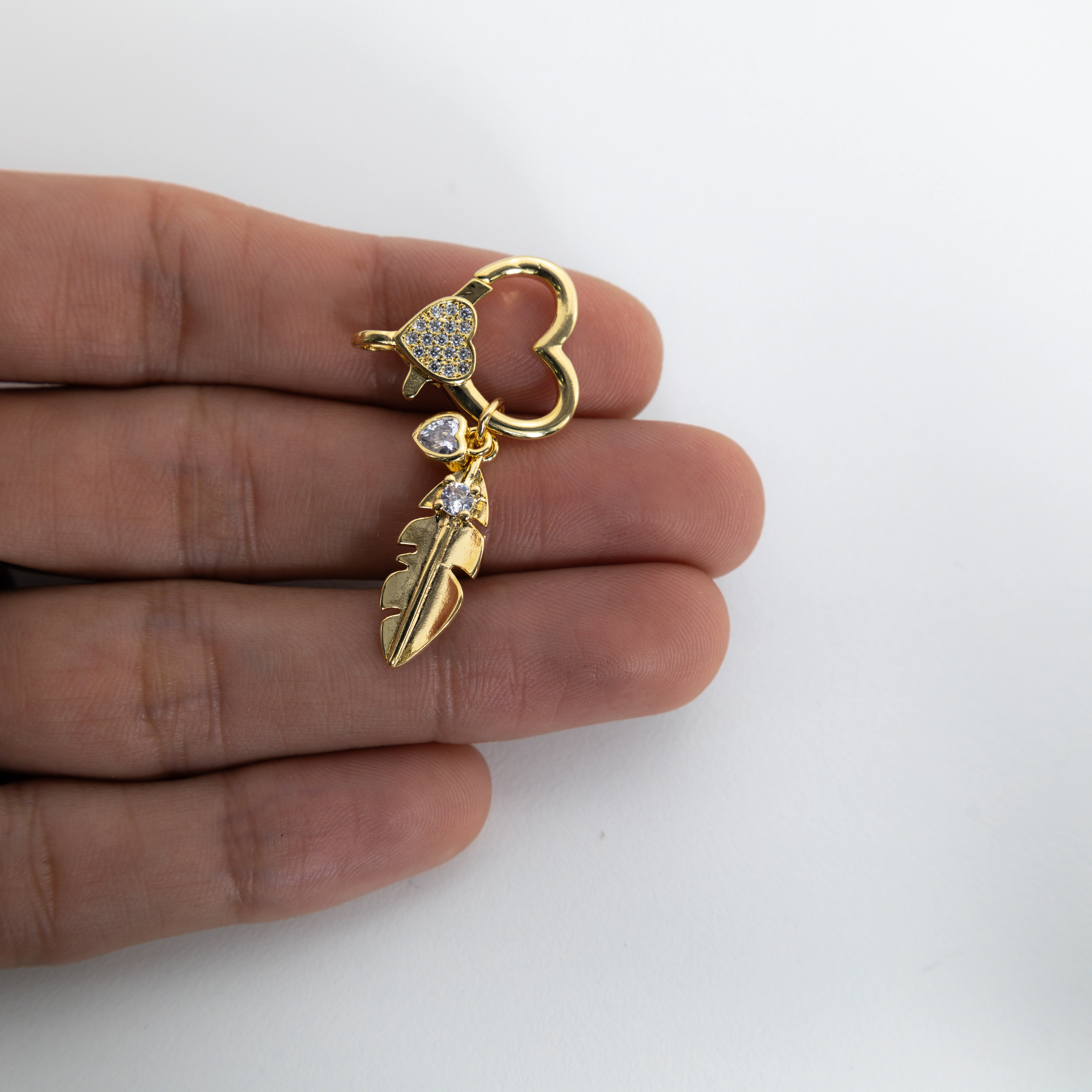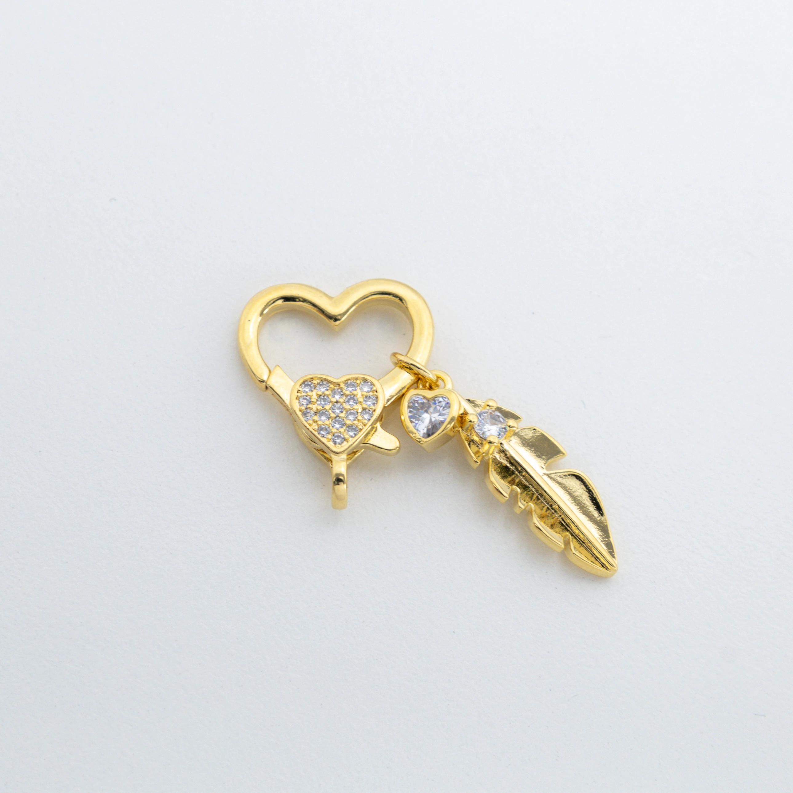 Our Heart with Feather Clasp, Plated in 18k Gold, Symbolizes the Lightness of Love and the Freedom of The Spirit. The Heart Is Embellished with Sparkling Crystals, and The Feather Charm Exudes Elegance. Is Perfect for Adding a Touch of Sentimental Elegance to Your Jewelry Ensemble. It Can Be Paired with a Variety of Chains to Suit Any Occasion, Making It a Versatile and Meaningful Accessory.