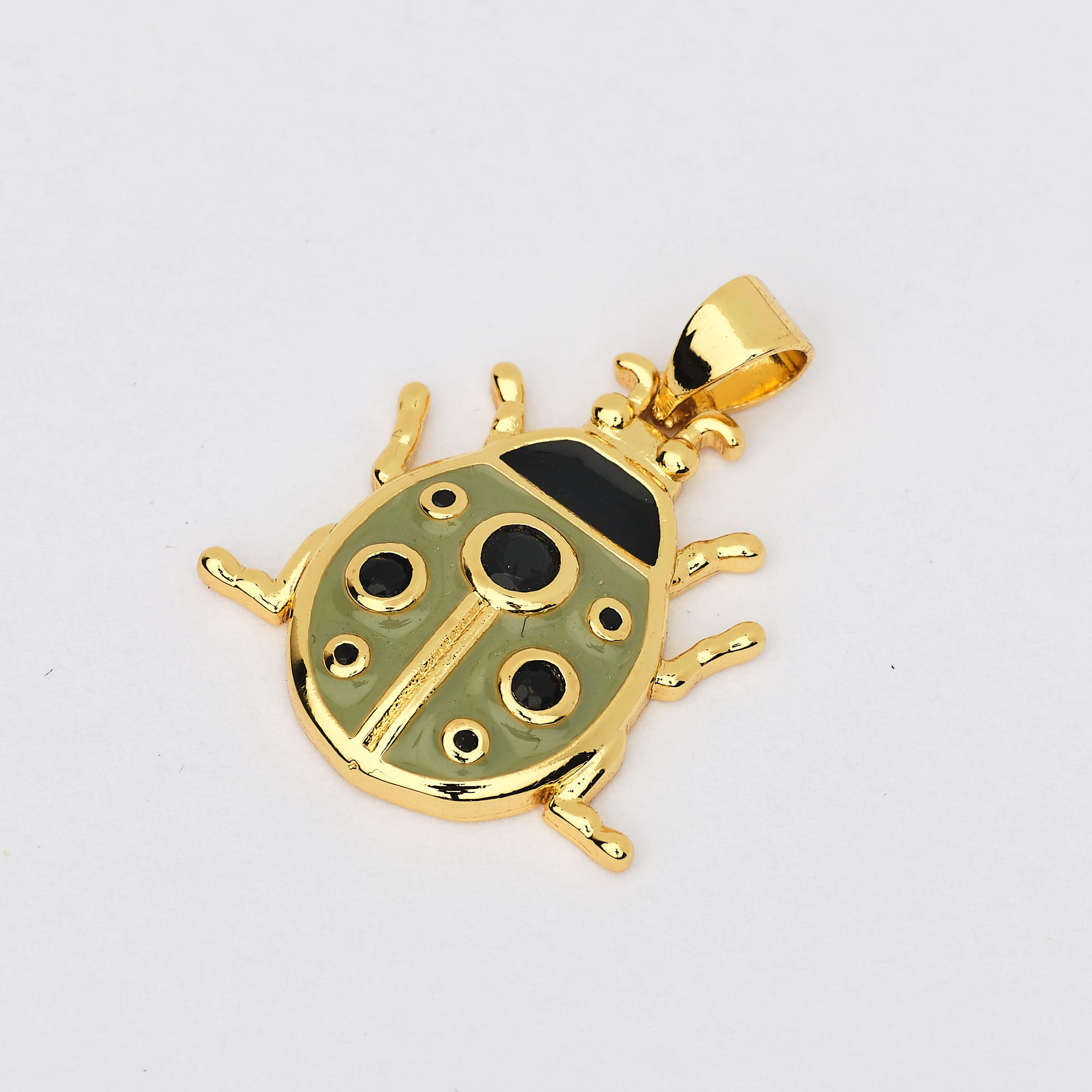 his delightful pendant features a ladybug design with emerald-hued enamel accents. It's a playful yet elegant accessory that captures the ladybug's symbol of good luck and vitality.