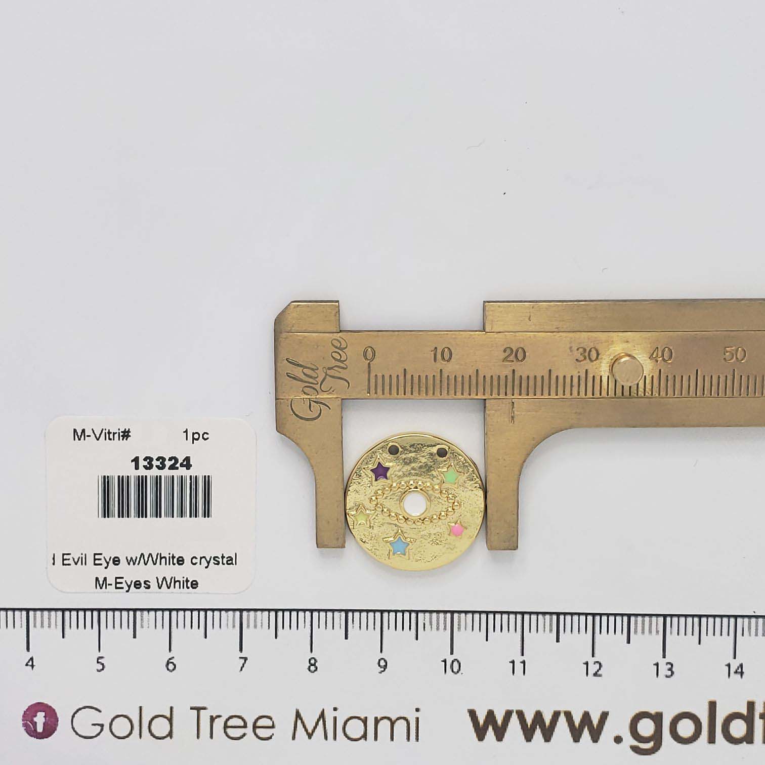 Gold Evil Eye Pendant with White Crystal