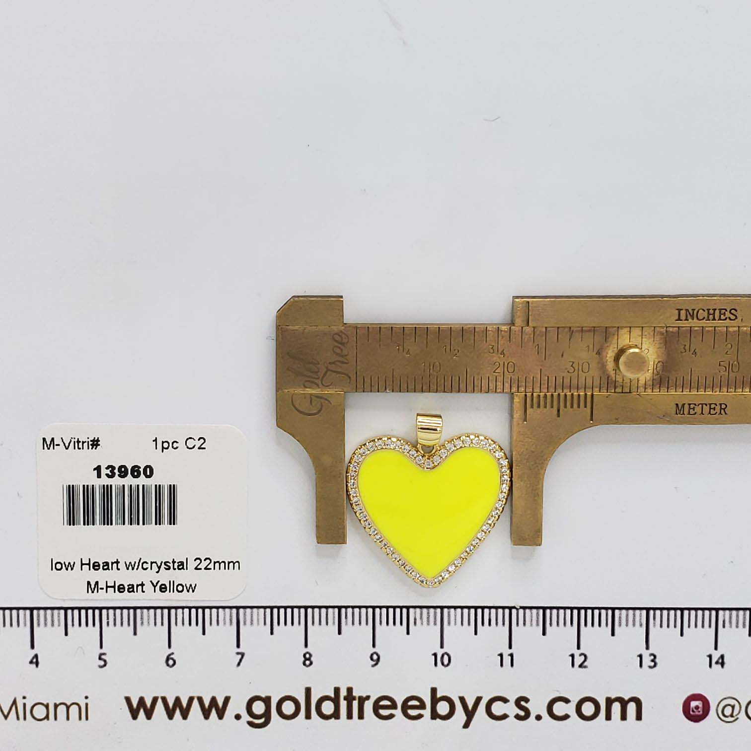 22mm Yellow Heart with Clear Crystals