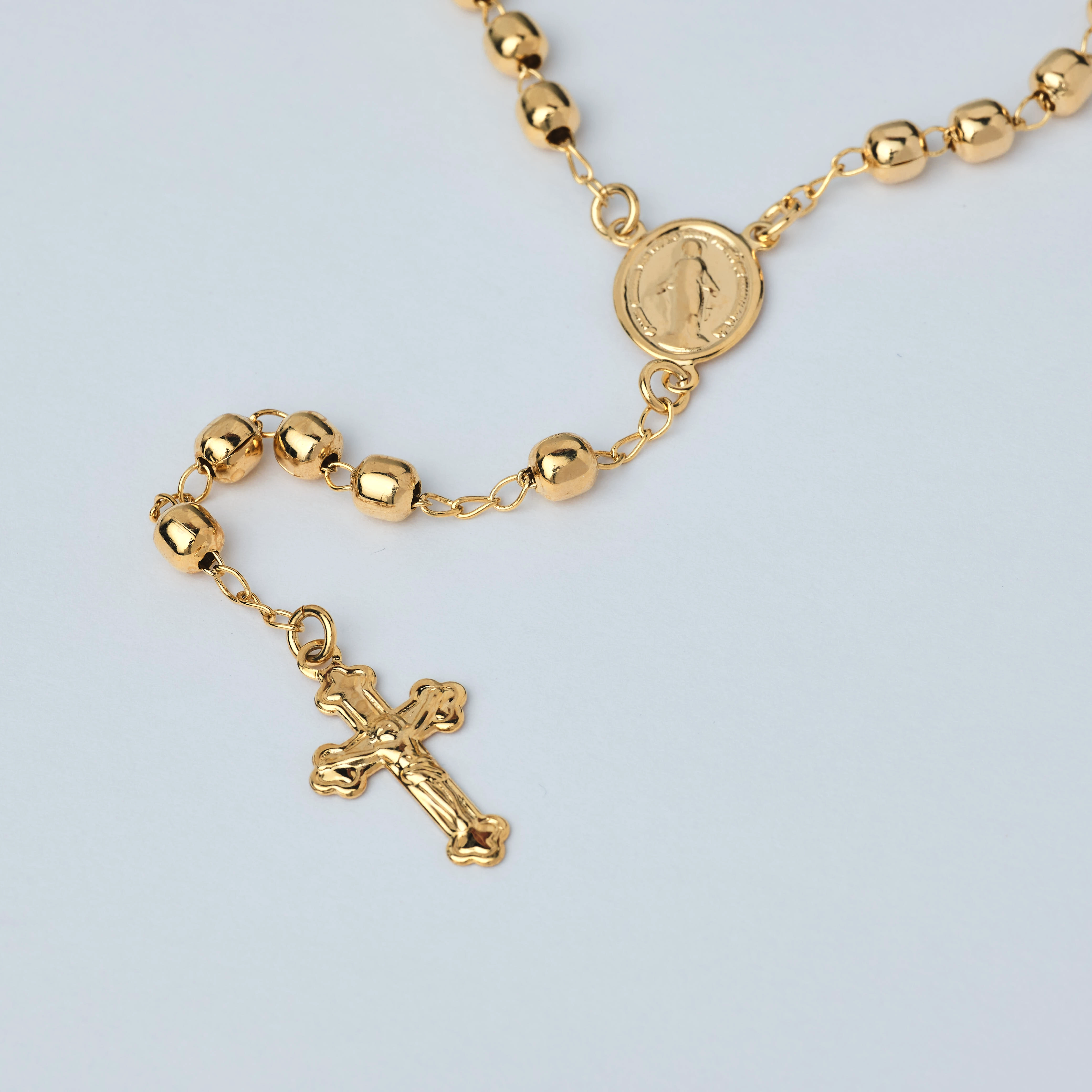 This Exquisite Rosary, Featuring 4.5mm Gold-Plated Beads, Combines Spiritual Significance with Elegant Design. It Serves as a Reminder of Faith and a Piece of Classic Beauty.