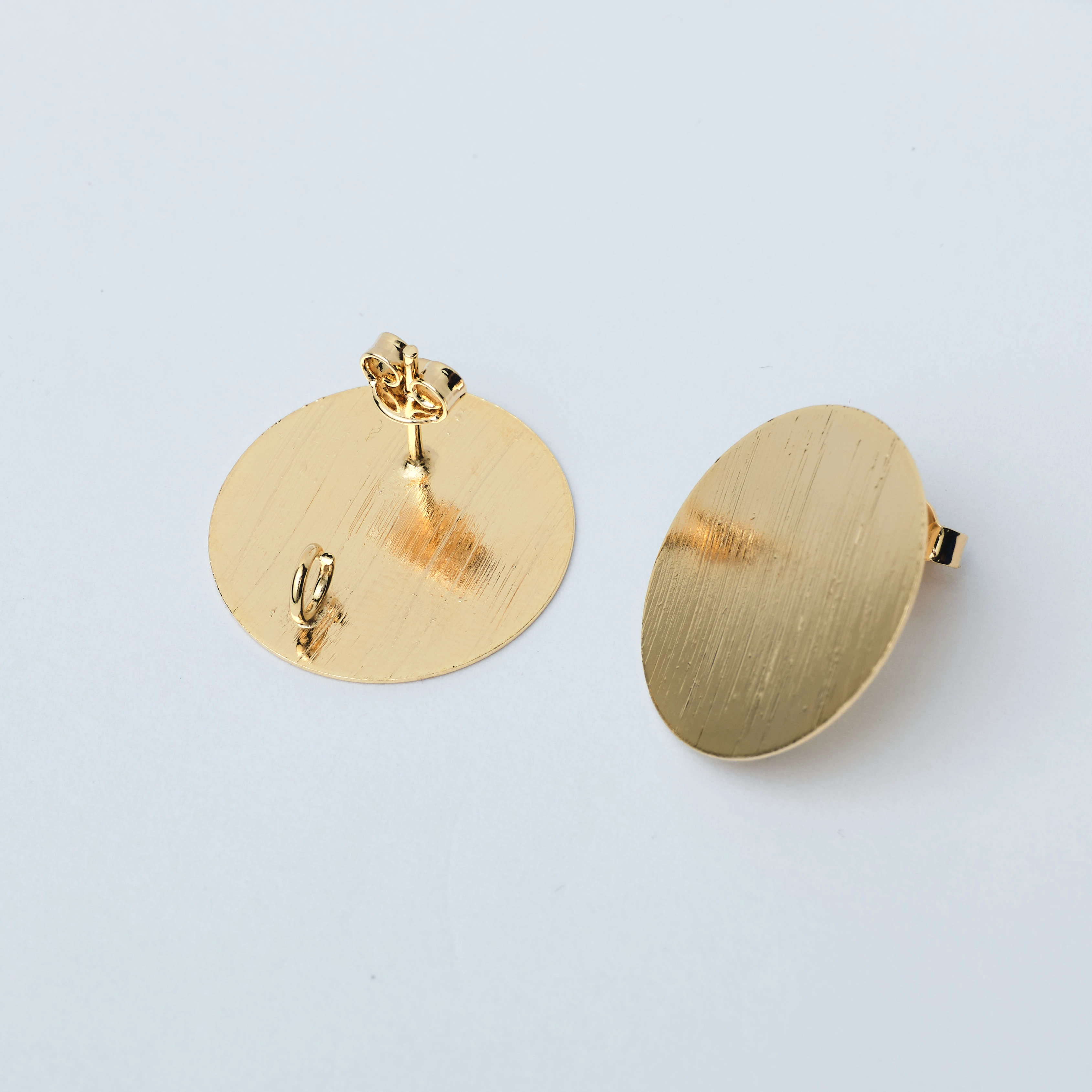 This earring base features a simple yet elegant round design, plated in rich 18K gold, offering a timeless canvas for creativity.