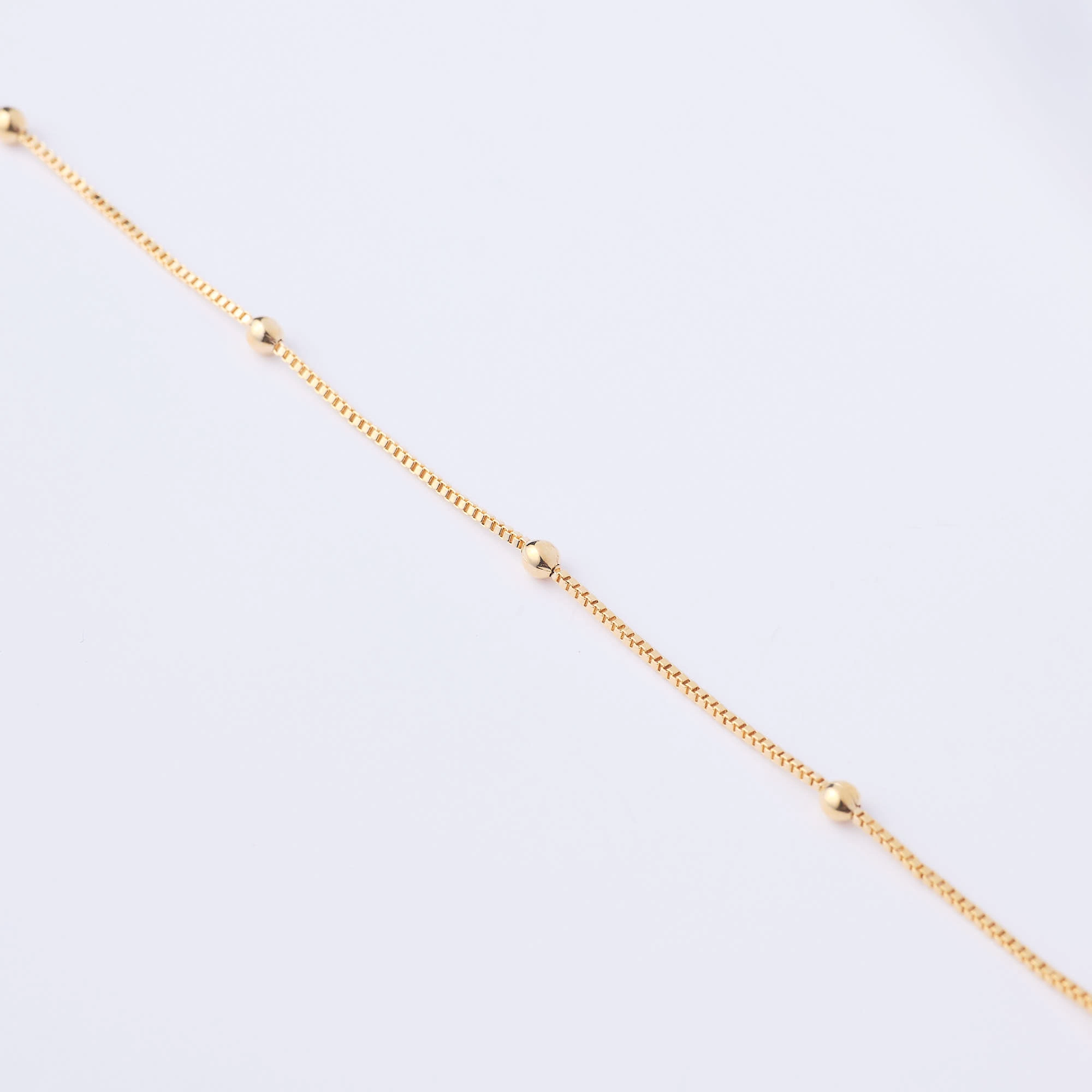 From Gold Tree Miami, We Introduce Our 18K Gold Plated Box Chain, Adorned with Balls Throughout Its Length. This Jewel Stands Out for Its Subtle and Elegant Design, Being Ideal for Layering or Wearing Alone. The Secure Clasp Ensures Its Durability and Comfort with Every Wear.