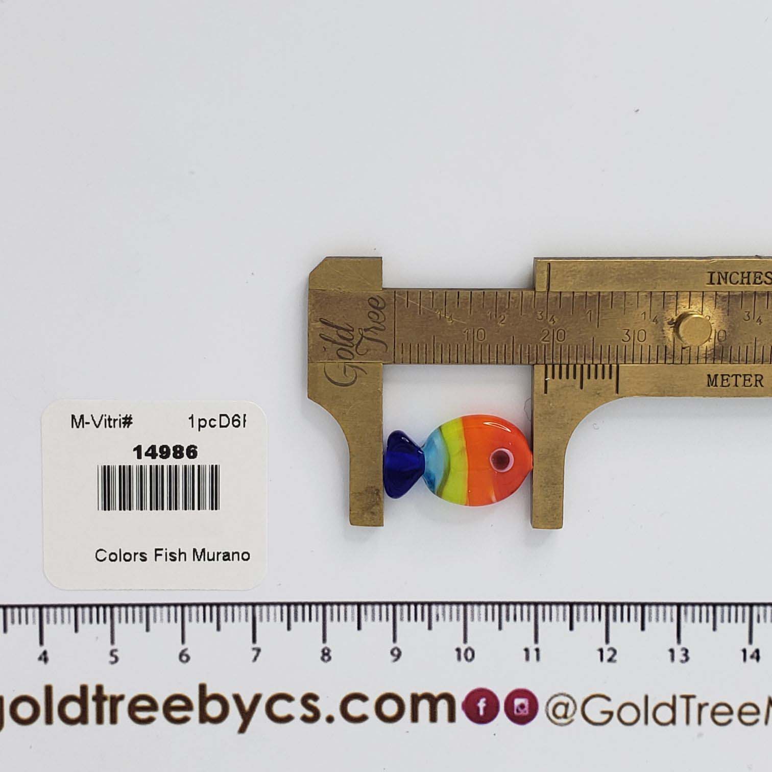 This charm features a fish design, skillfully crafted from Murano glass, renowned for its rich colors and intricate patterns. Each fish charm is a kaleidoscope of hues, showcasing the unique and striking glasswork that Murano is famous for.