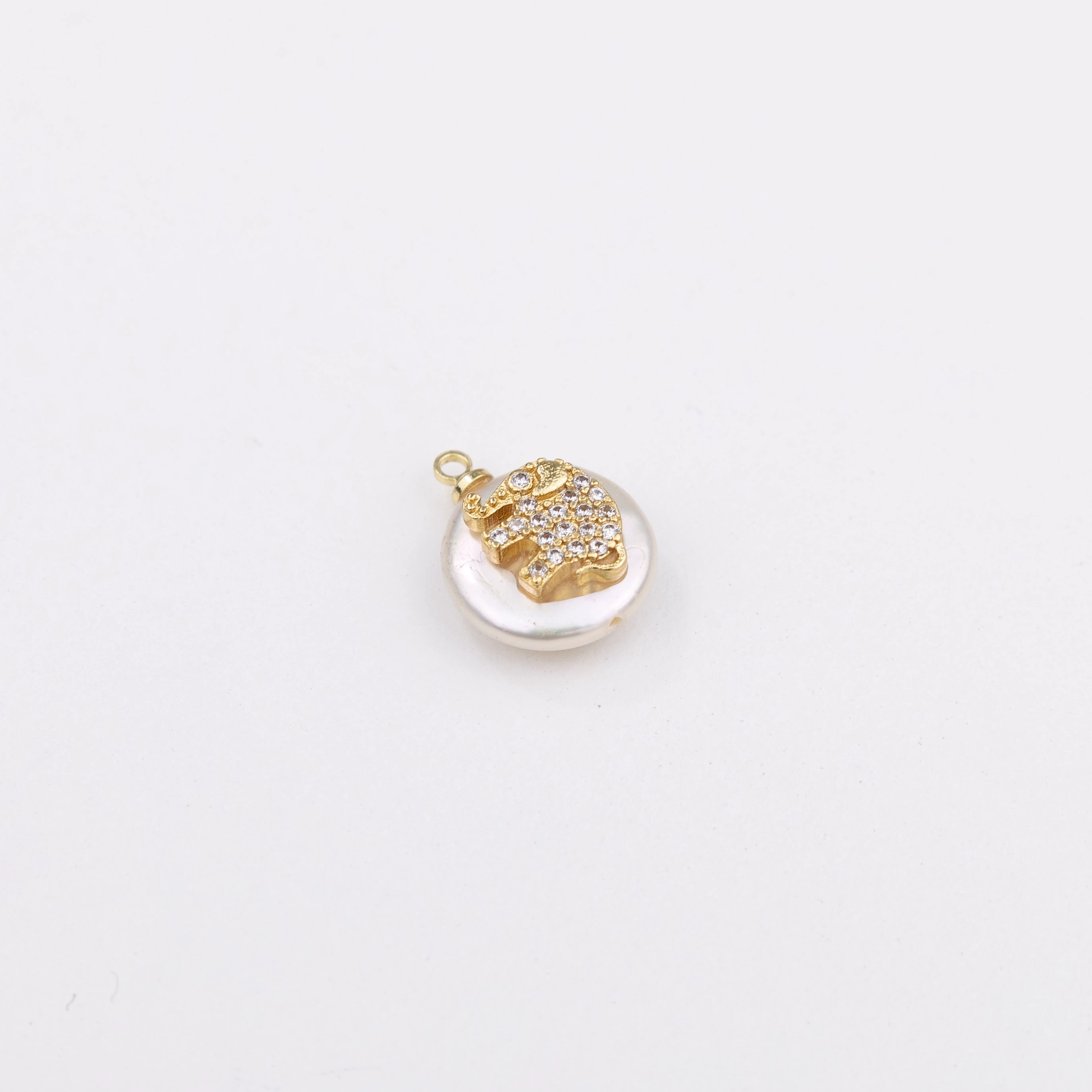 Discover elegance with this circular pearl pendant, accentuated by an elephant meticulously encrusted with sparkling diamonds.