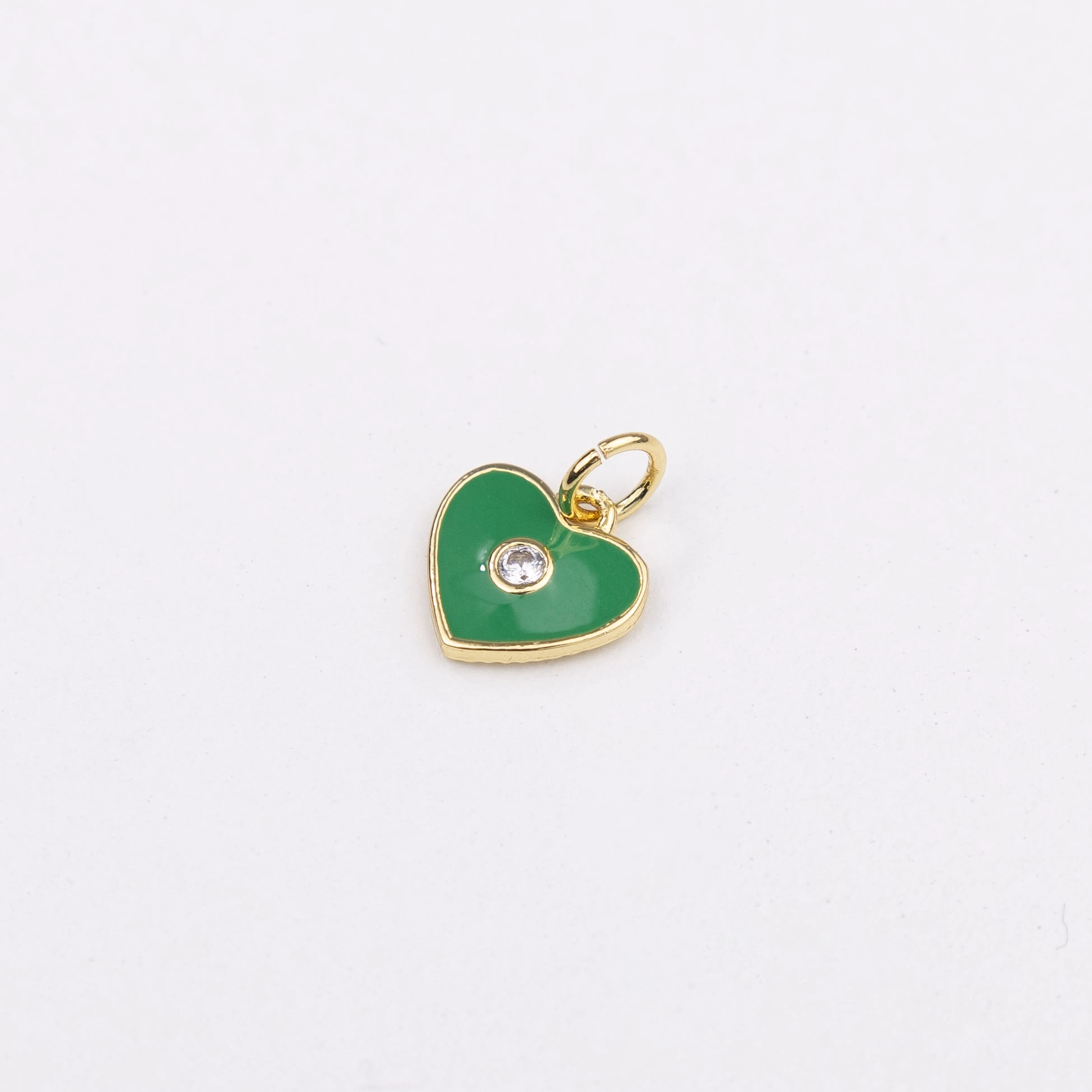 10mm Green Enamel Heart with Crystal Pendant