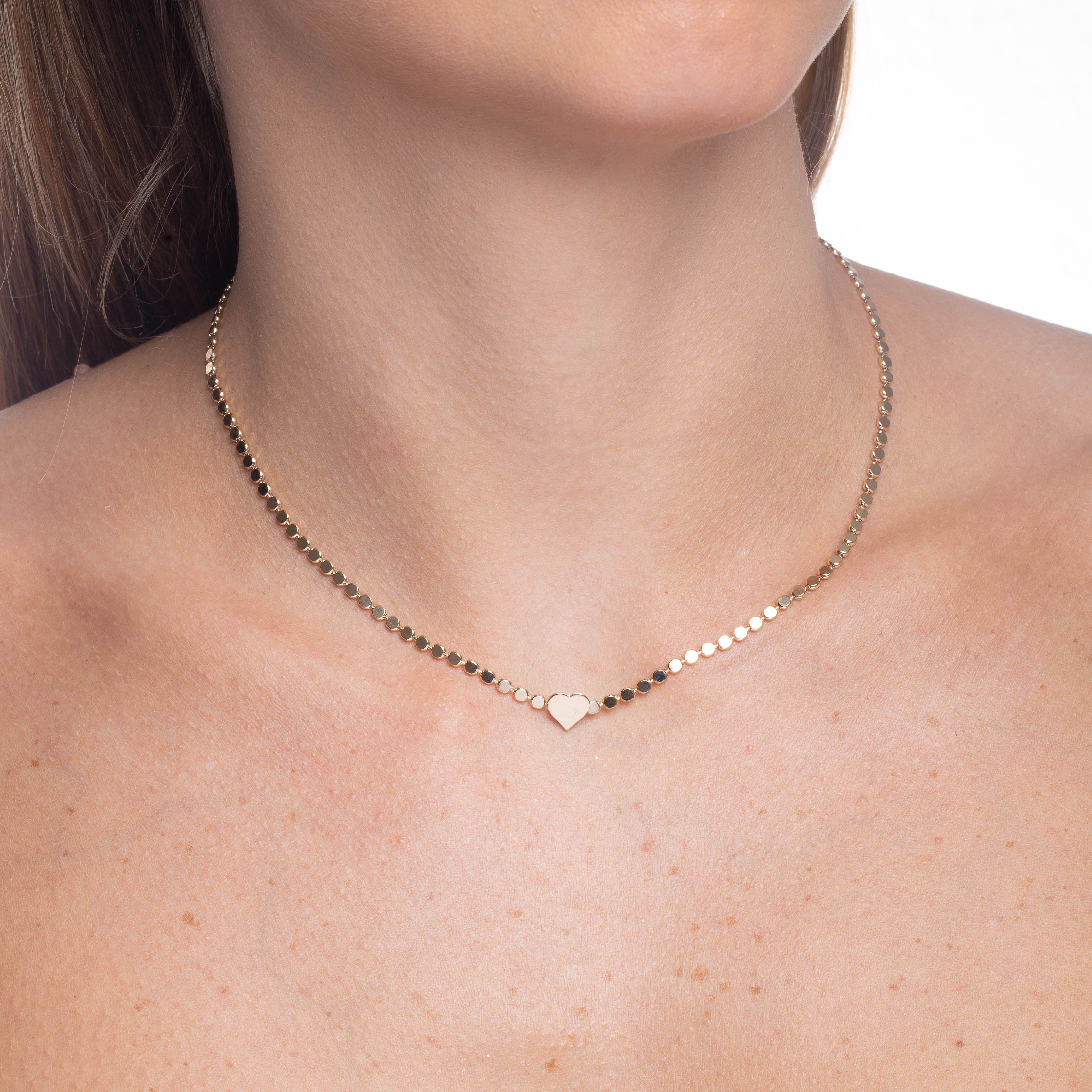 18k gold plating Flat Beaded Chain #426 W/Heart