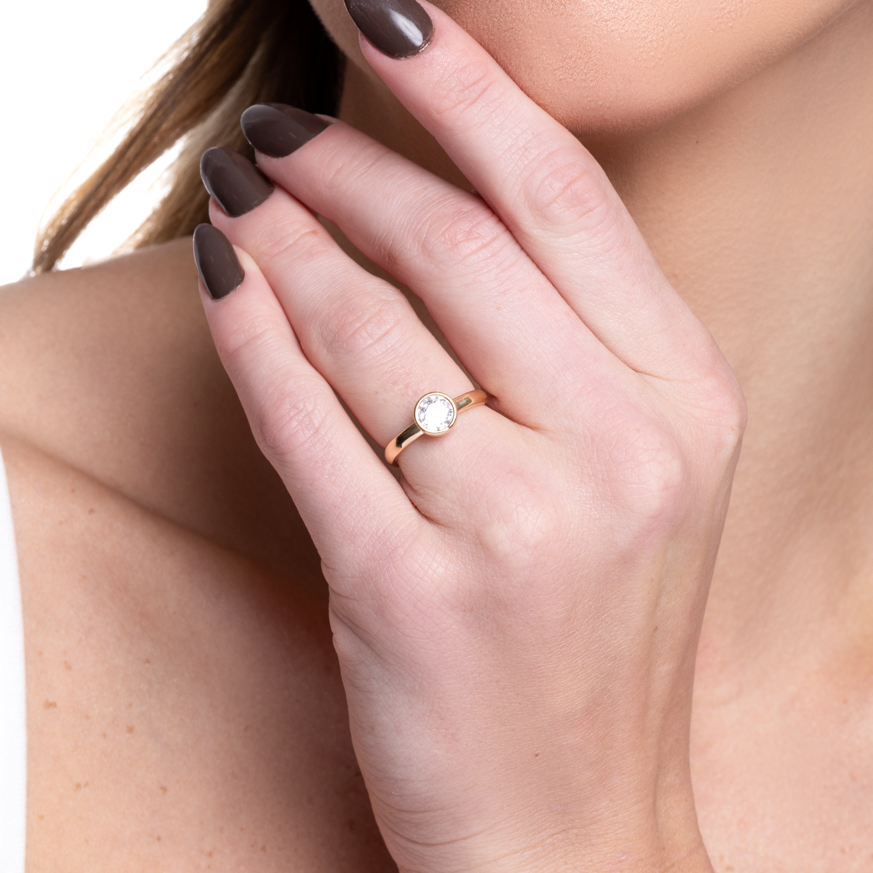 Gold Ring with Circle Crystal