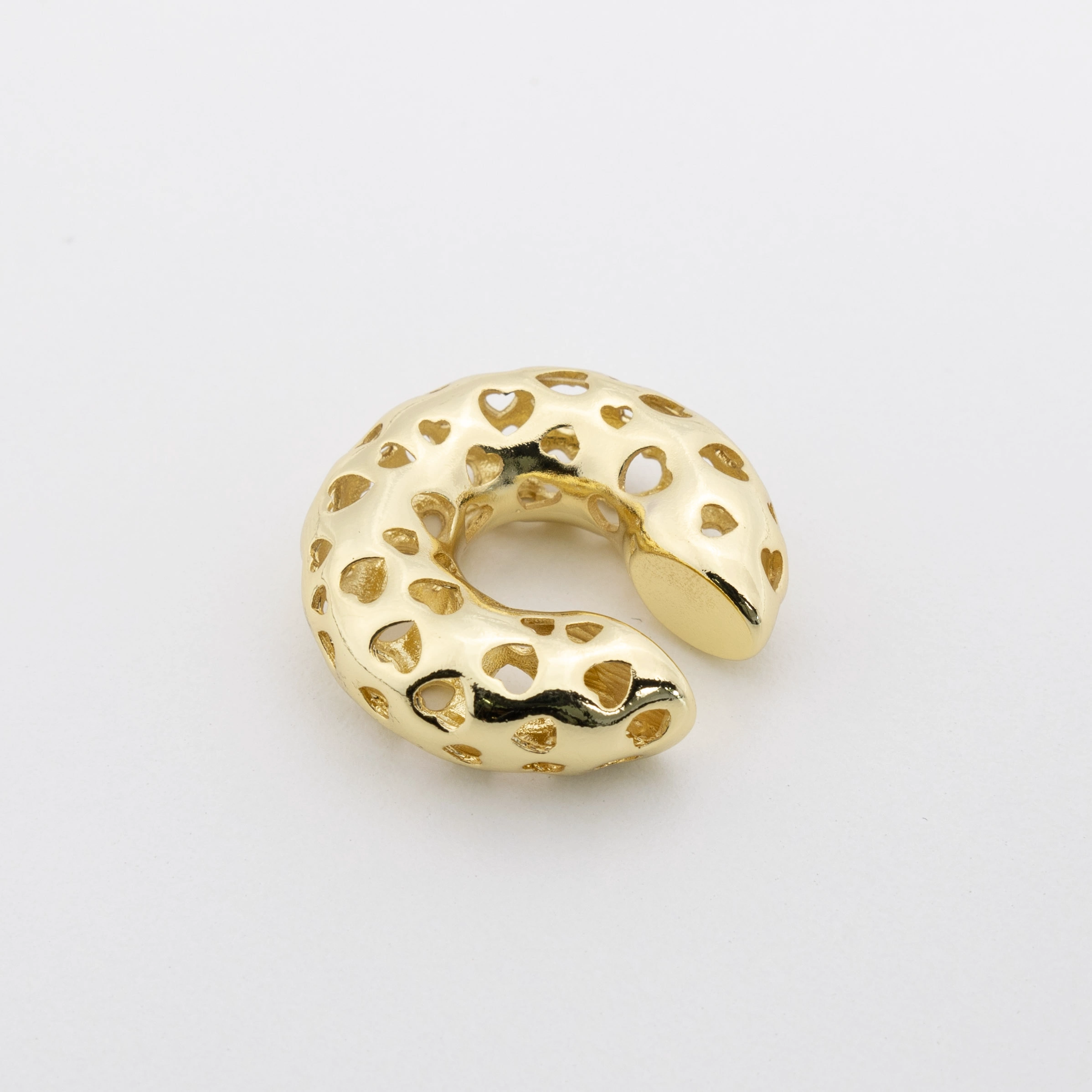 The Big Gold Ear Cuff Hearts From Gold Tree Miami, Plated in 18k Gold. A Perfect Choice for Those Seeking a Unique Accessory and Looking to Add a Sophisticated Touch to Any any Outfit.