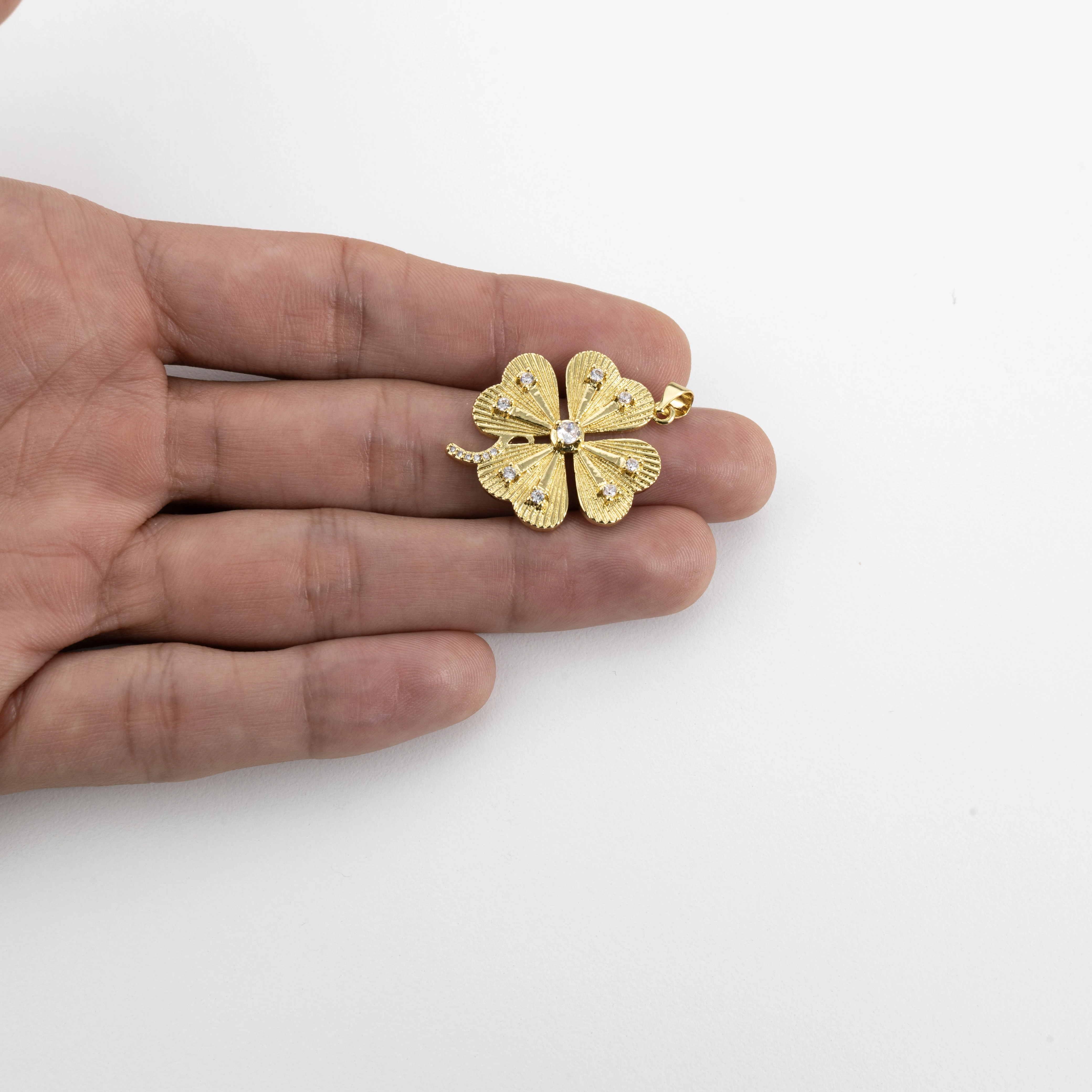 Elevate your style with Gold Tree Miami's radiant clover pendant. Immaculately plated in 18k gold, this pendant boasts clear, sparkling crystals strategically placed for optimal shine. Whether you're crafting a singular statement piece or a full collection, this pendant promises elegance and distinction.