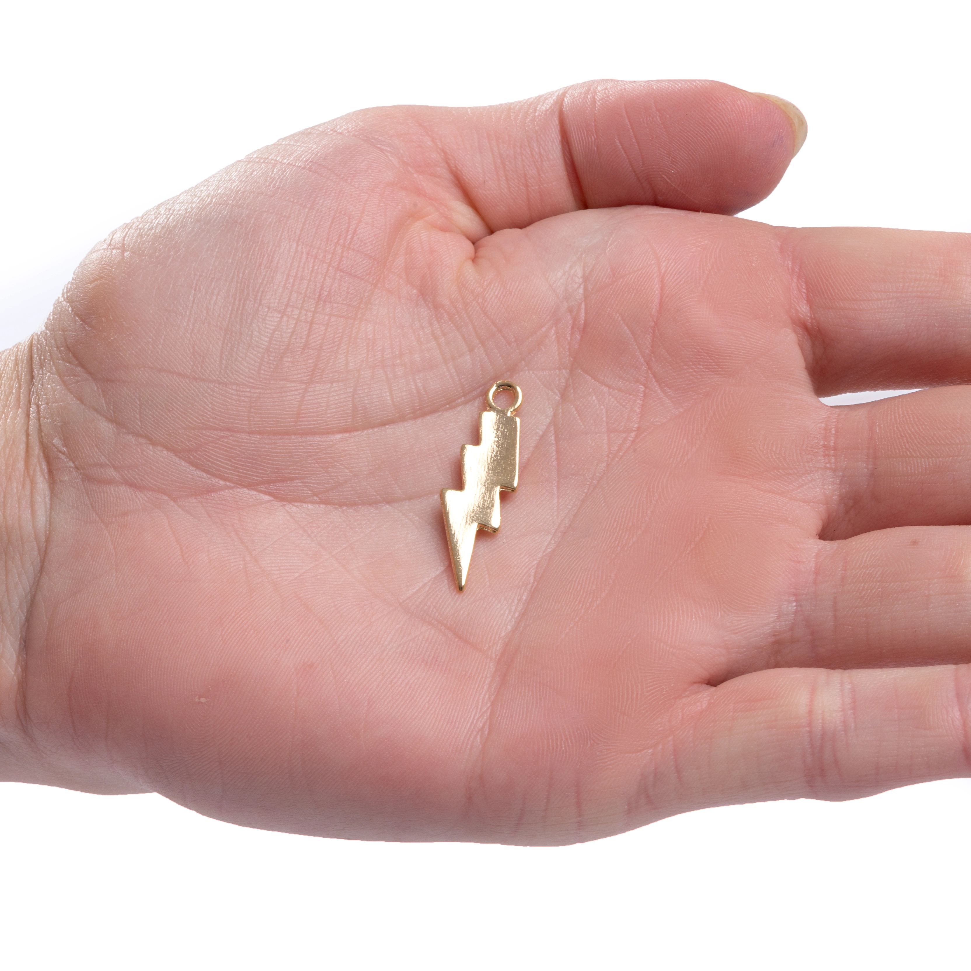 Unleash your inner power with our gold-plated thunderbolt charm. Crafted to perfection, this charm offers a sleek and modern design, ideal for those who appreciate unique and expressive jewelry. Be it for a bracelet, necklace, or as part of a larger collection, this Gold Tree Miami charm radiates elegance and strength.