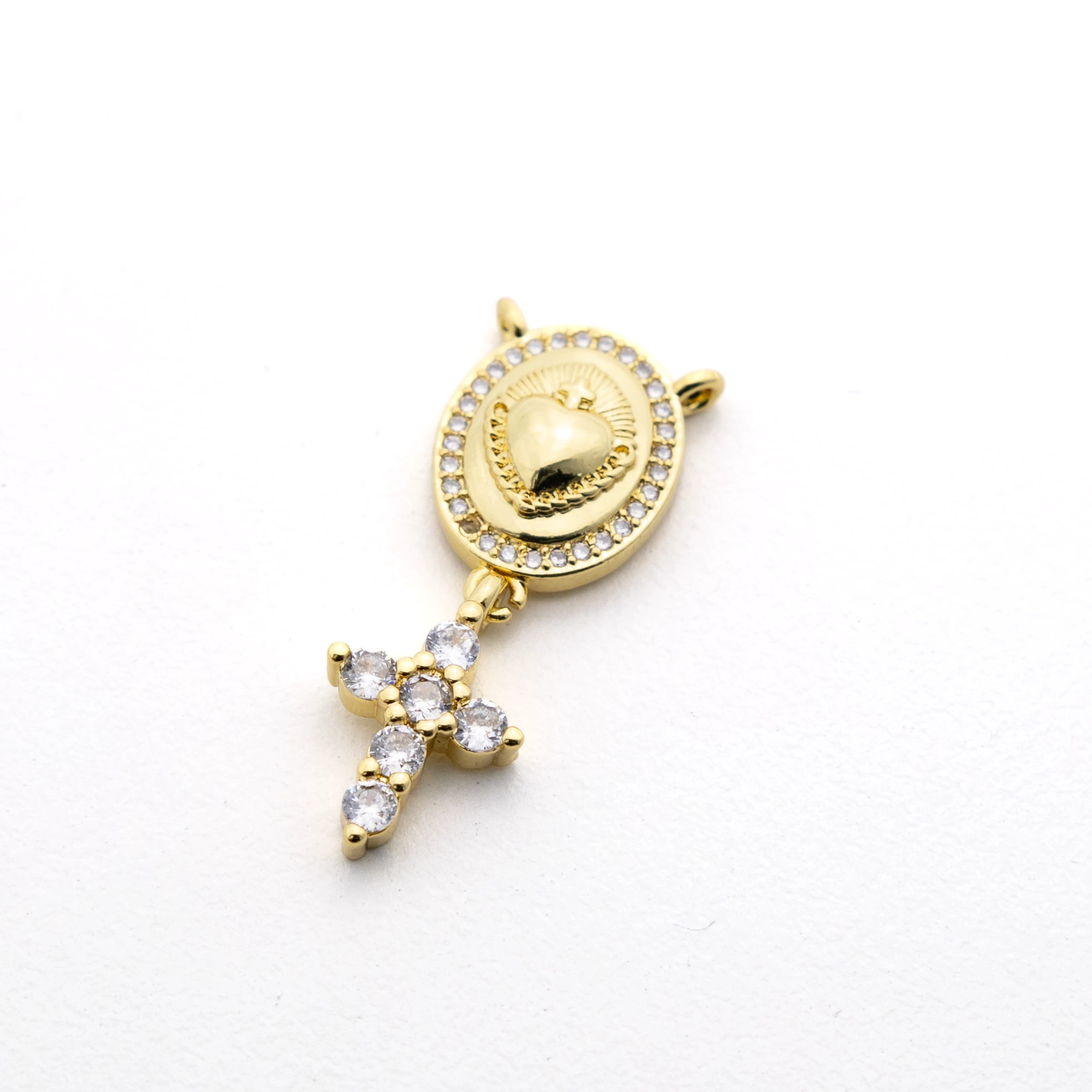 Express your devotion with our 18k gold-plated Virgin Valle . This piece features a graceful representation of the Valle Virgin, complemented by a radiant cross inlaid with shimmering crystals. Perfect for those looking to craft their own necklace or start a meaningful collection.