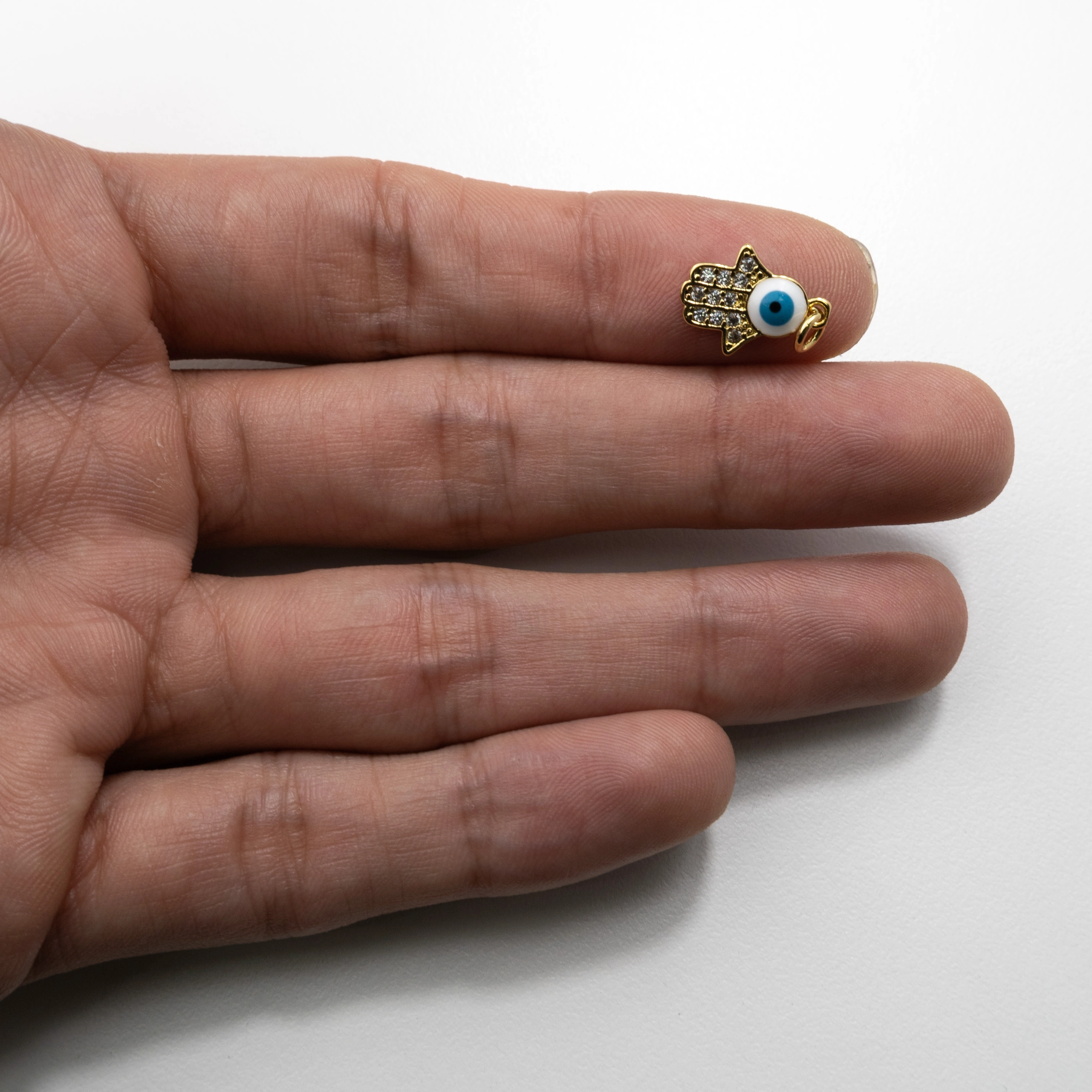 Hamsa Hand Pendant with White Evil Eye and Crystal