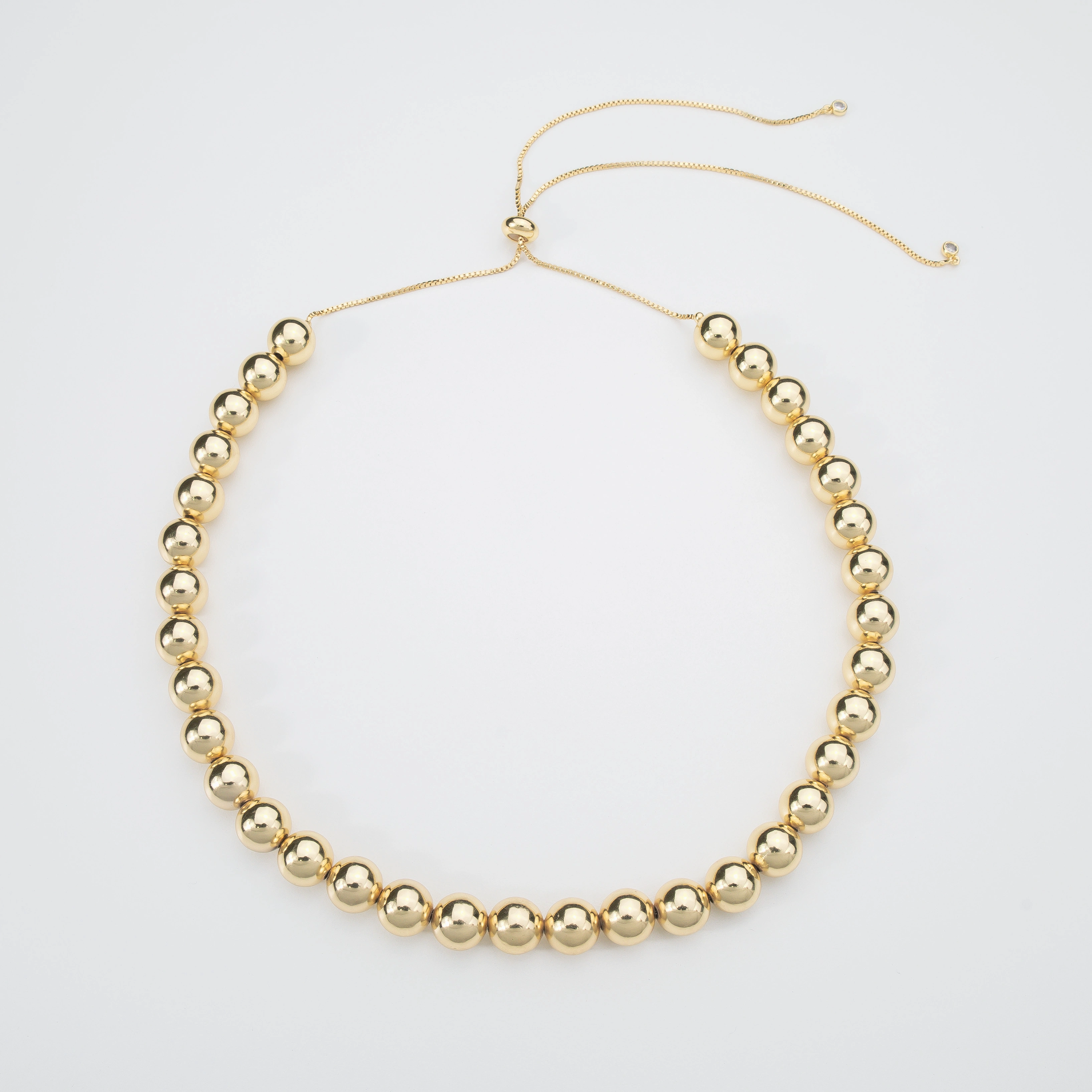 Discover the perfect blend of versatility and luxury with our 6mm 8MM 10MM Gold Bead Adjustable Chain. Each 18k gold-plated bead shines with a lustrous finish, strung on a flexible chain for a customizable fit. Designed for ease and elegance, this piece from Gold Tree Miami adjusts to your preferred length, ensuring the ideal drape for any neckline