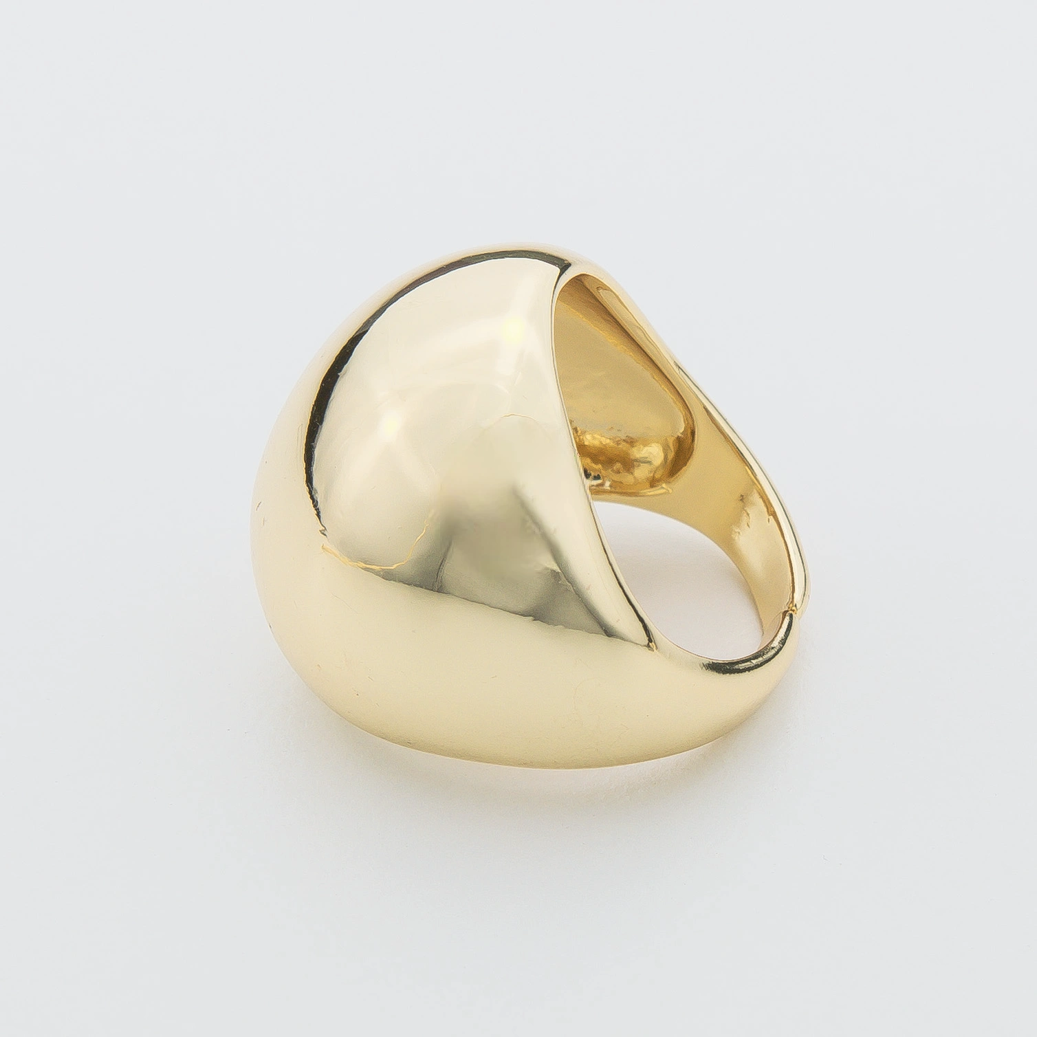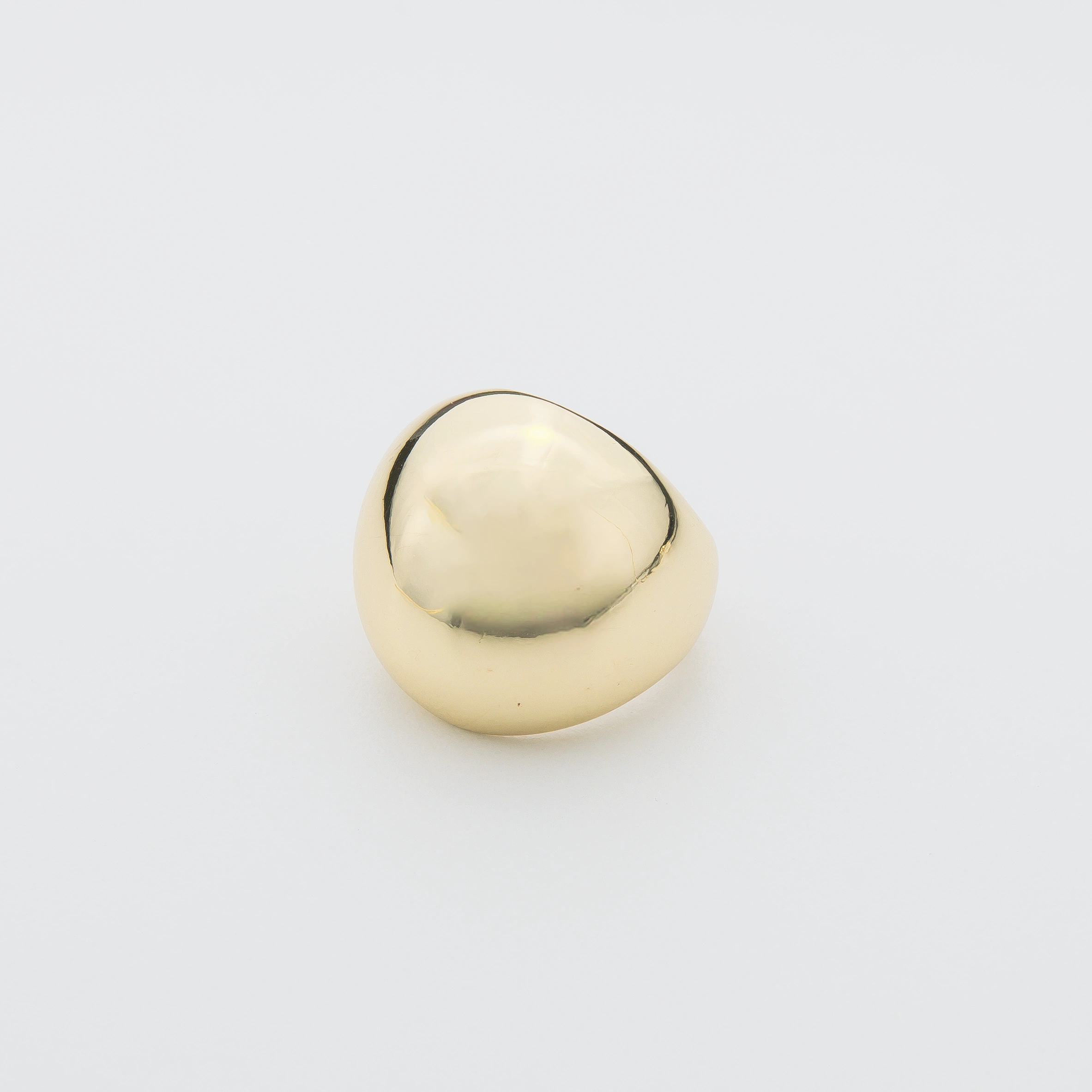 The Puffy Ball Ring from Gold Tree Miami is an exquisite piece of jewelry that showcases the art of simplicity and volume. Plated in 18k gold, this ring features a bold, spherical design that is both modern and timeless. The high polish finish gives it a luxurious shine, perfect for those who love statement pieces