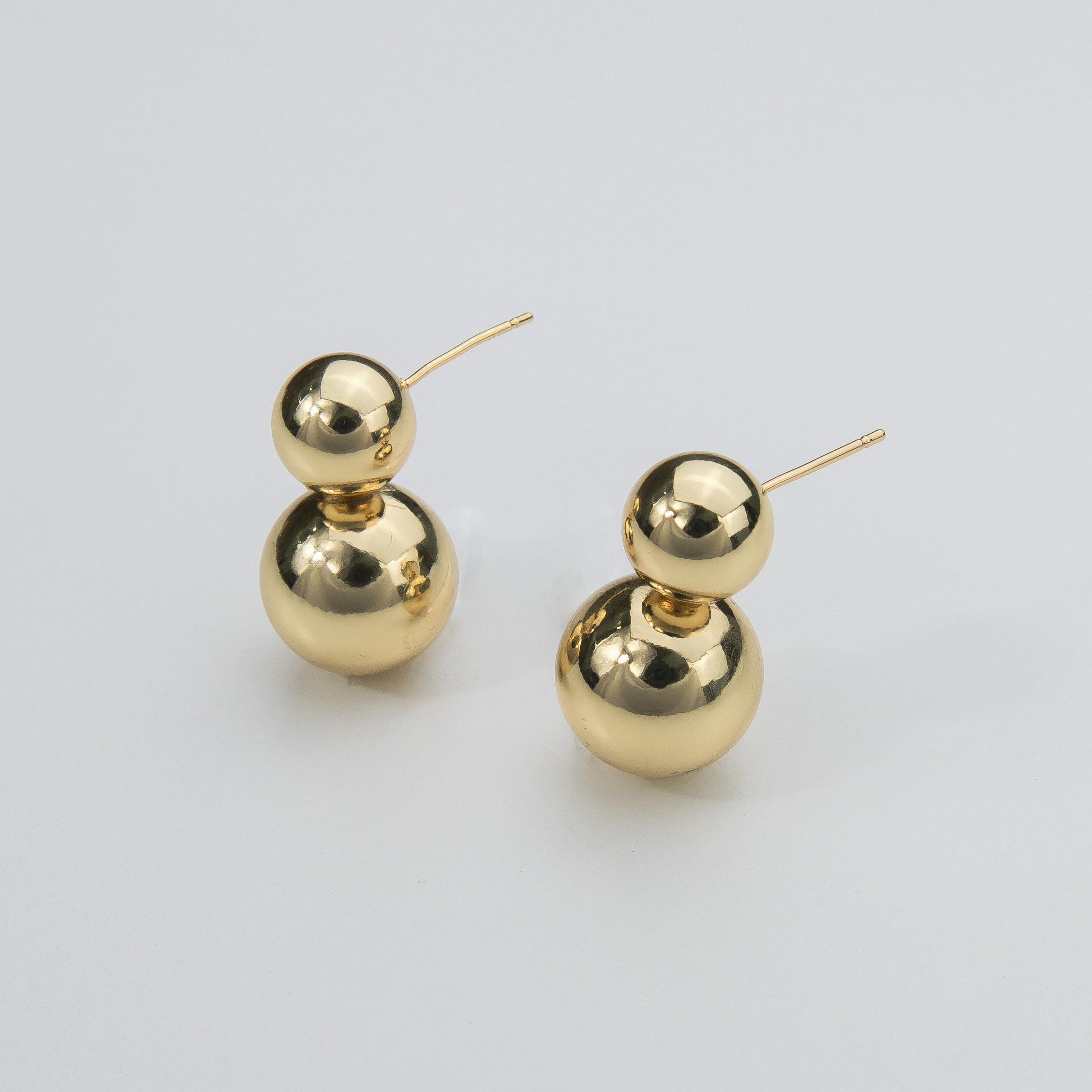 These Golden Orbital Earrings exude elegance and simplicity, making them a versatile addition to any jewelry collection. Crafted with care, each earring features a double sphere design with a smaller gold ball atop a larger one, both boasting a high-shine finish that captures light beautifully. The clean lines and polished surface lend a modern touch to a classic form