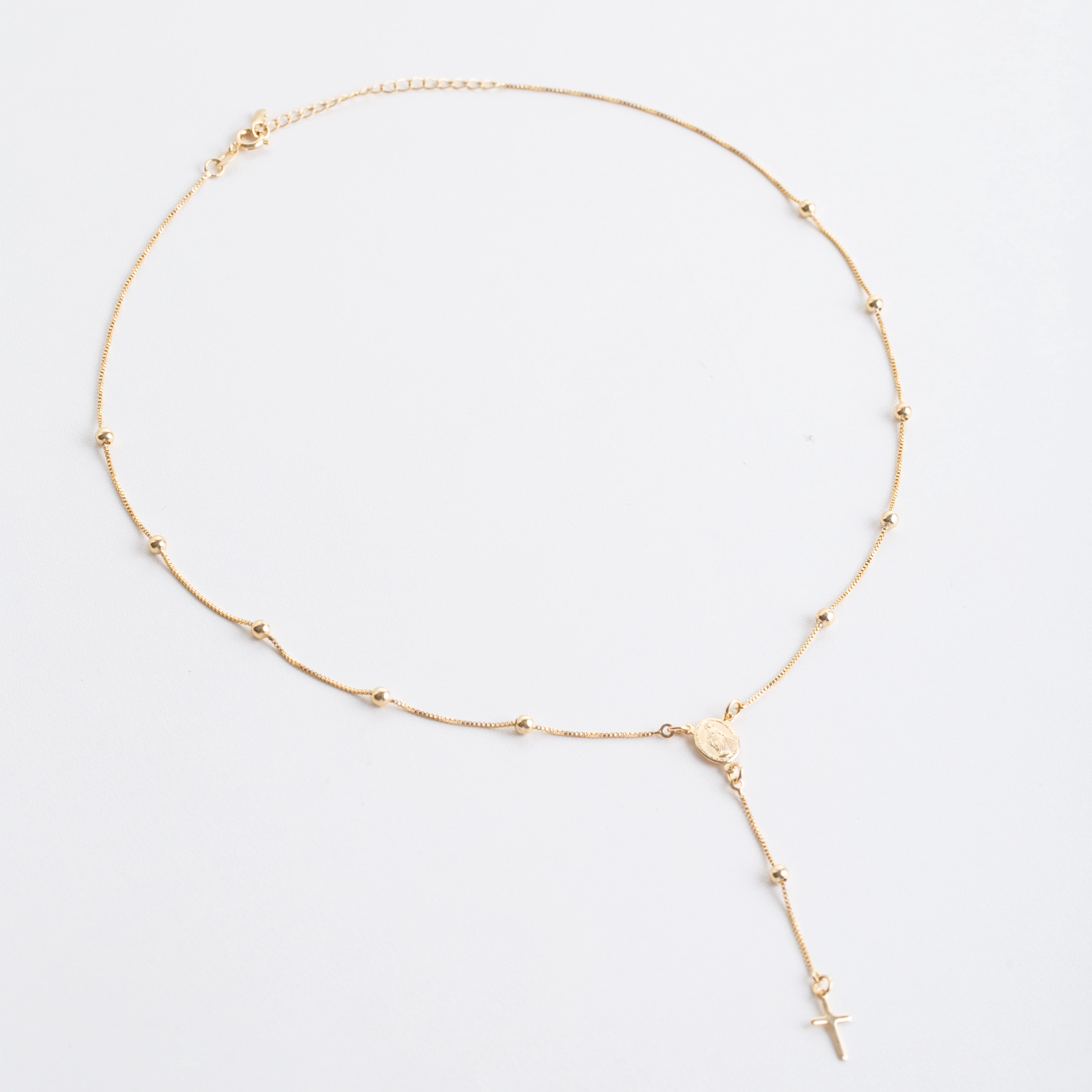 Our 18k Gold-Plated Chain Denario is a modern take on traditional devotion. Crafted with precision, each bead represents a prayer, joined by a high-quality chain that signifies unity and strength. The central medallion and crucifix are designed with care, serving as a daily reminder of faith and spirituality