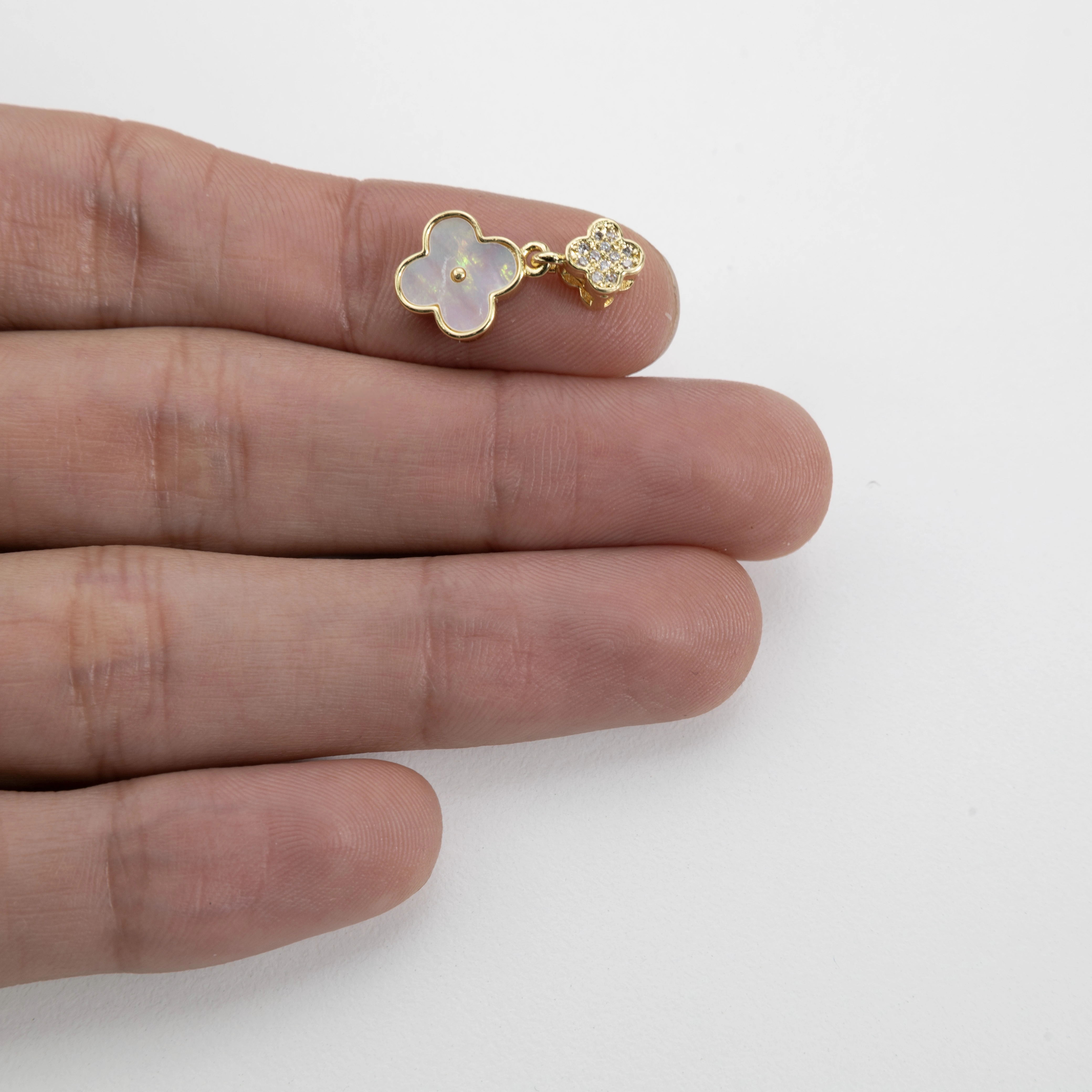 old Tree Miami's 'Mother-of-Pearl Flower Slider Charm' is a fine piece that melds functionality with aesthetic appeal. Centered with a mother-of-pearl flower, this charm features a versatile slider design that allows for easy threading onto chains or cords, bringing a touch of natural elegance and tranquility