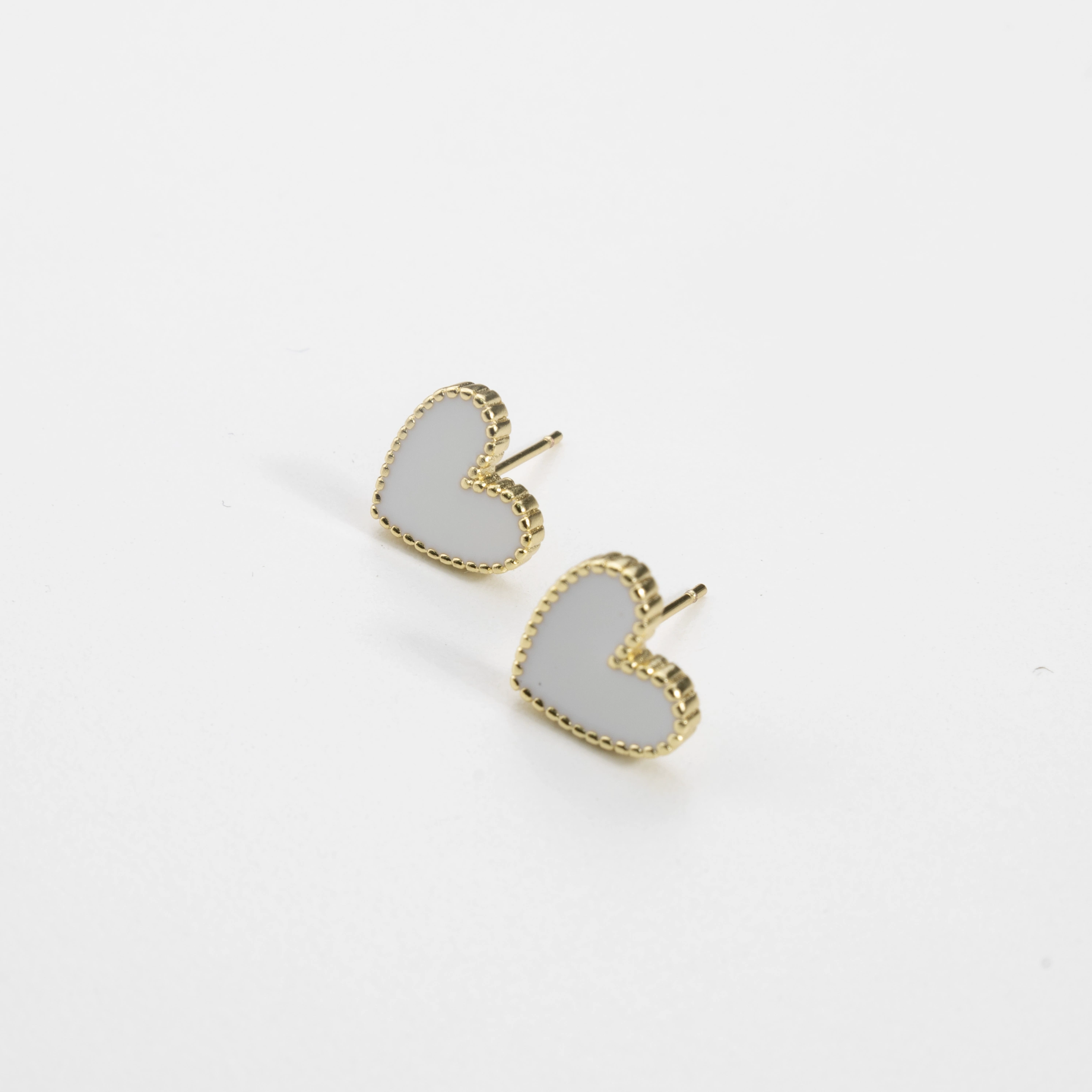 Discover the charm of our White Enamel Heart Earrings from Gold Tree Miami, a delightful addition to any jewelry collection. These lovely earrings feature a pristine white enamel inlay set within a heart-shaped, 18k gold-plated frame. The contrast of the bright enamel with the warm gold creates a stunning visual appeal. Their playful yet sophisticated design makes them suitable for various styles and occasions