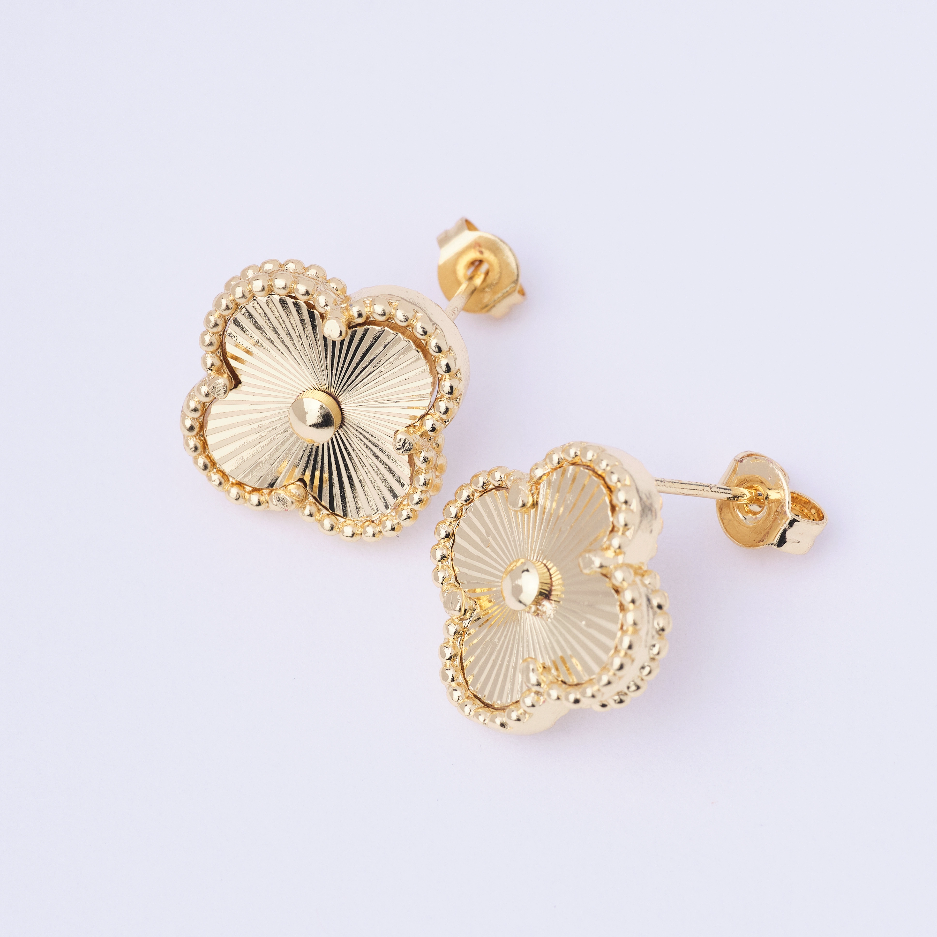 Perfect for boutique retailers, these stud earrings are an excellent choice for expanding a premium jewelry range. They offer customers a blend of classic design and contemporary style. The symbolism of the clover as a harbinger of good luck makes them a thoughtful gift or personal keepsake. Their 18K gold plating ensures lasting wear and appeal.