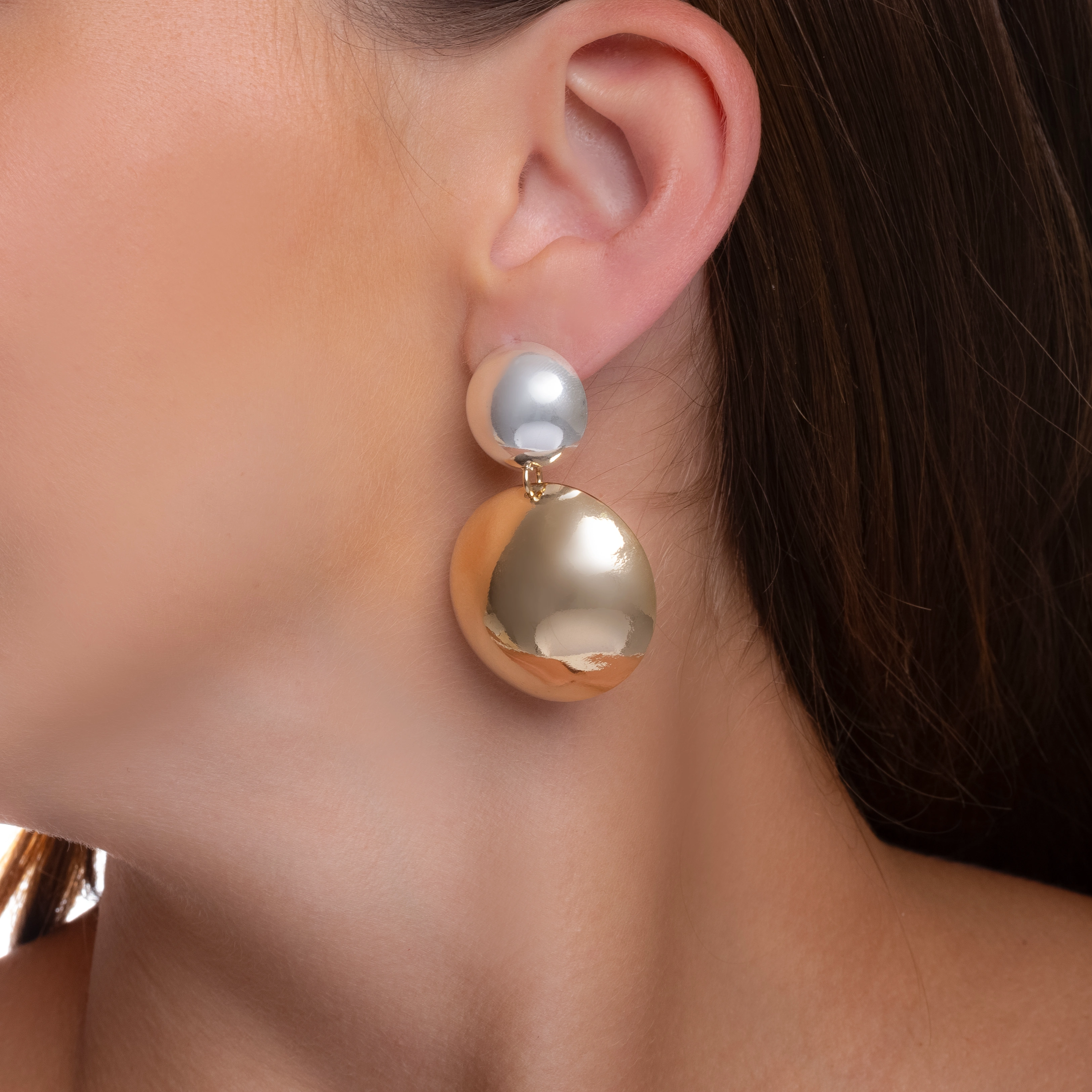 Make a statement with the Lustrous Pearl Reflection Earrings. These earrings feature a stunning combination of 18K gold-plated mirror discs and elegant pearls, creating a dynamic interplay of reflection and sophistication. The design embodies modern elegance, offering a bold yet refined addition to any wardrobe