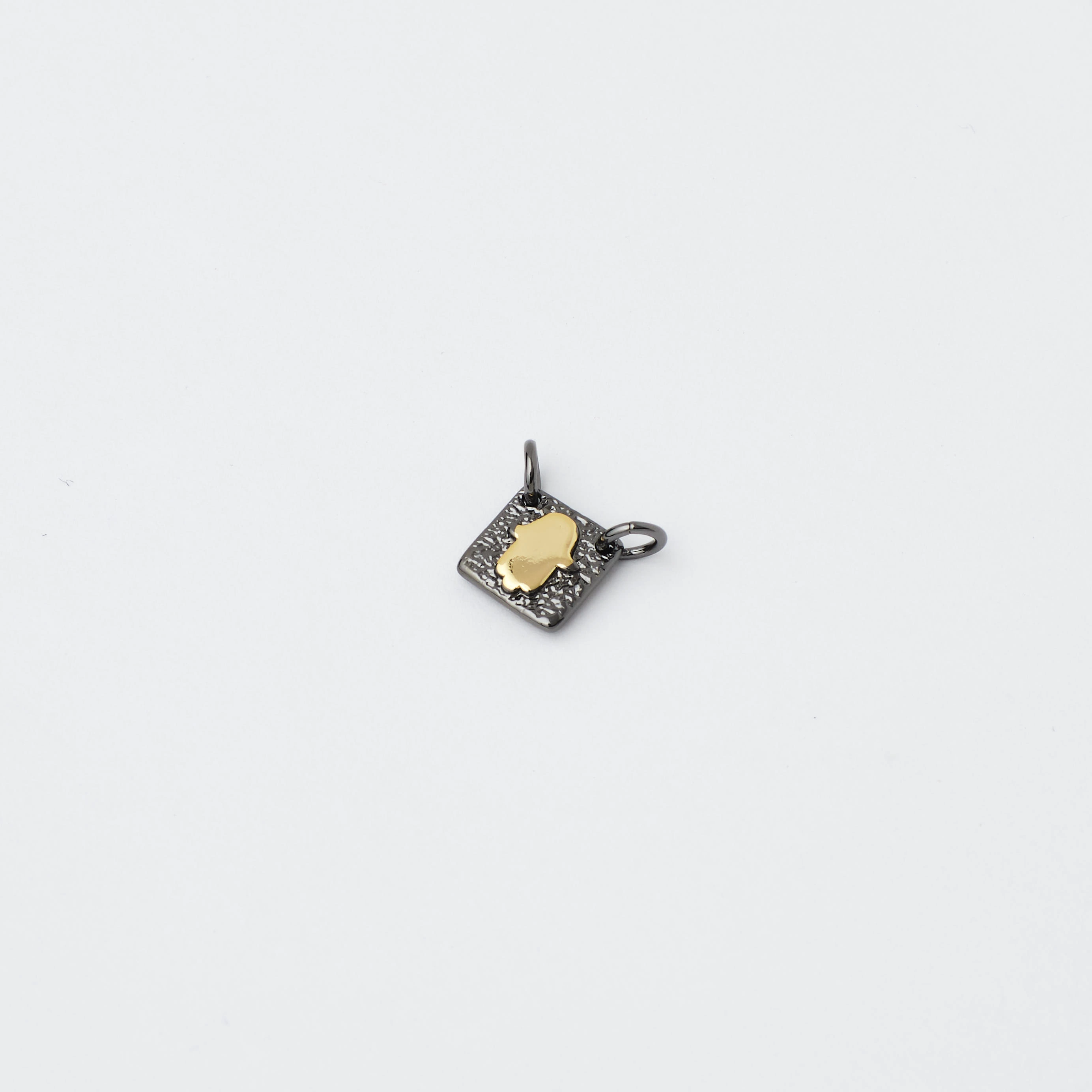 Embrace a blend of faith and fortification with our square scapular, gracefully plated in 18k gold and embellished with the iconic Hamsa Hand in silver. This charm is not just a symbol of spirituality but also a sentinel against the evil eye and negative energies