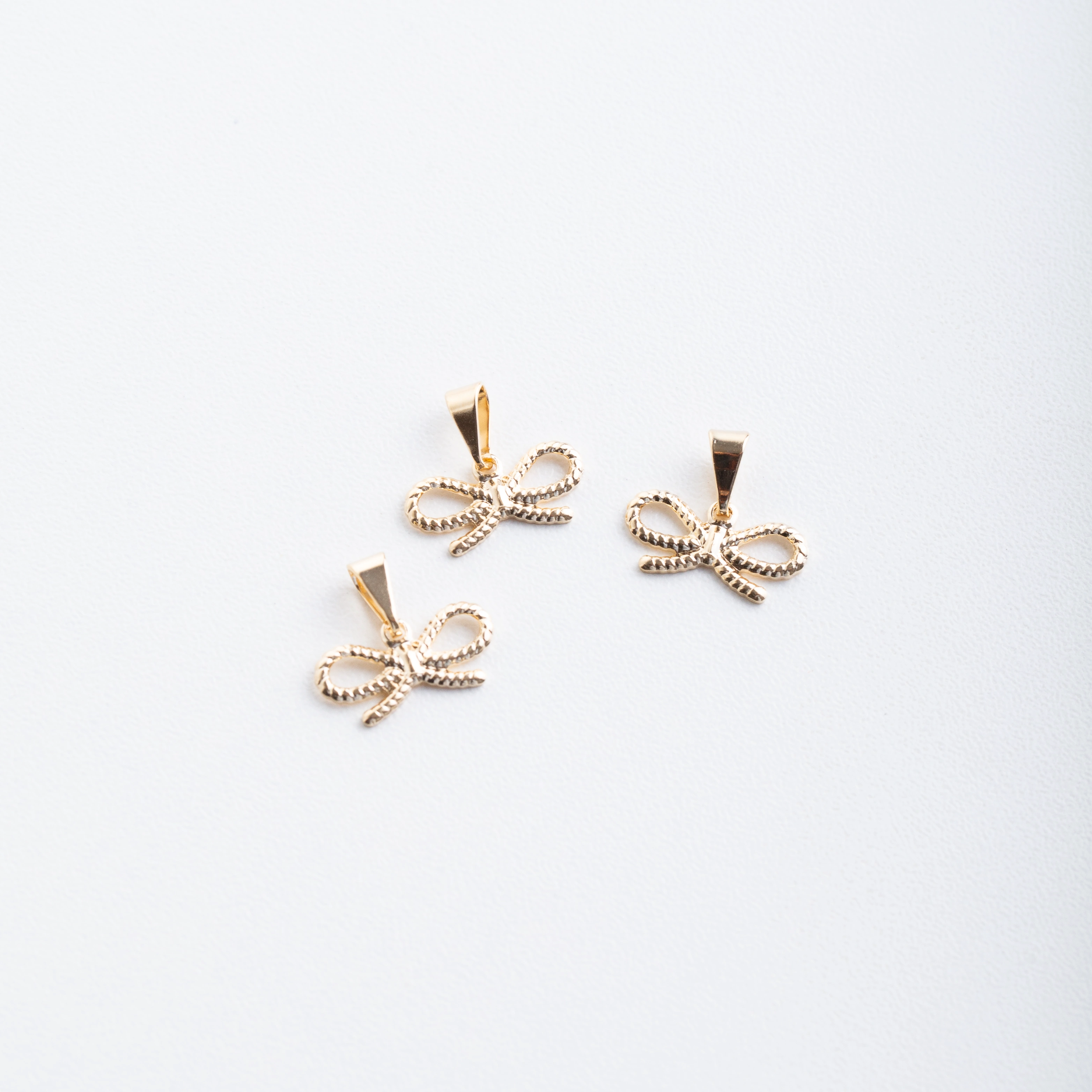 Introducing the 'Golden Bow Charm' from Gold Tree Miami, a graceful token of timeless fashion. This charm captures the essence of classic beauty with its bow shape, polished to a lustrous sheen. Its detailed craftsmanship evokes a sense of delicate opulence