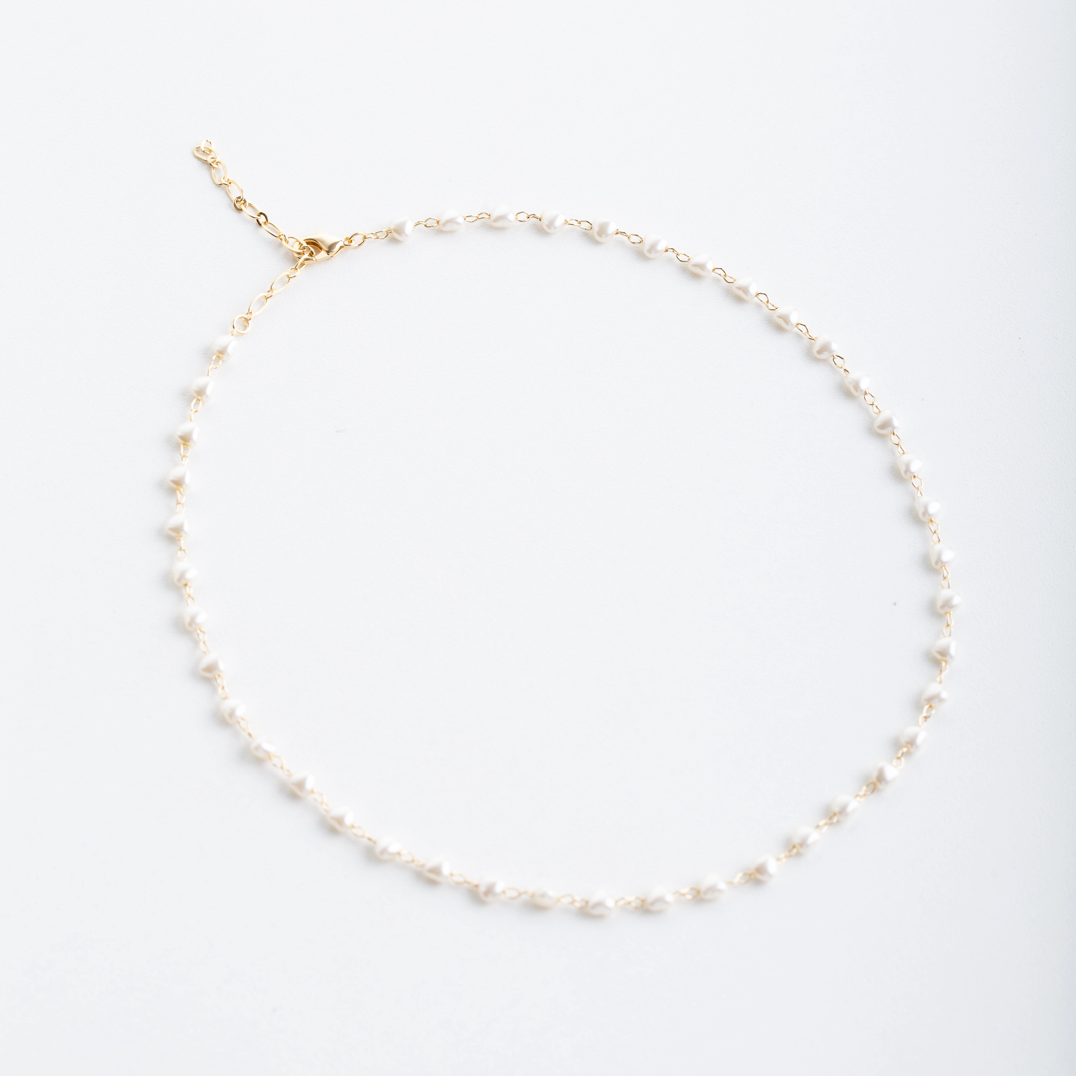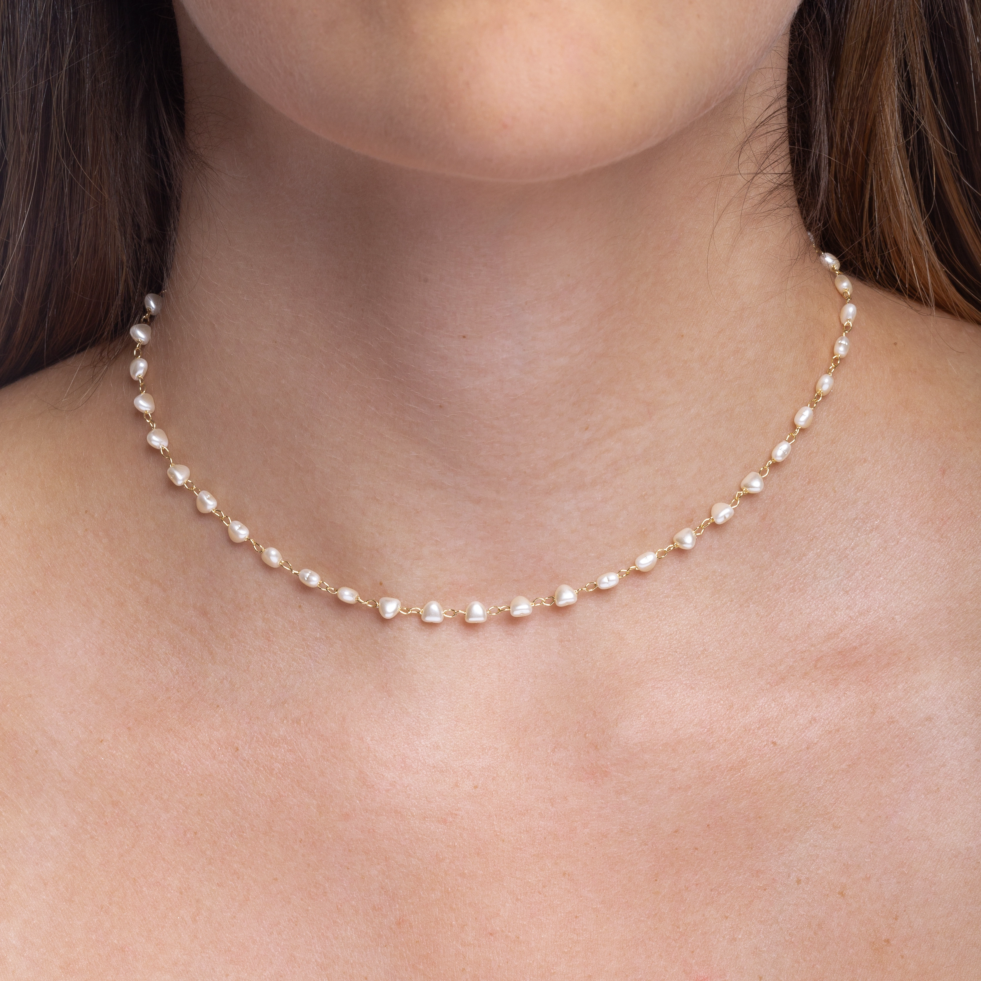 Gold Tree Miami's 'Heart-Shaped Pearl Chain Necklace' is a captivating piece, where the timeless elegance of pearls meets the universal symbol of love. This necklace features delicate heart-shaped pearls, evenly spaced along a dainty chain, offering a romantic twist on the classic pearl necklace