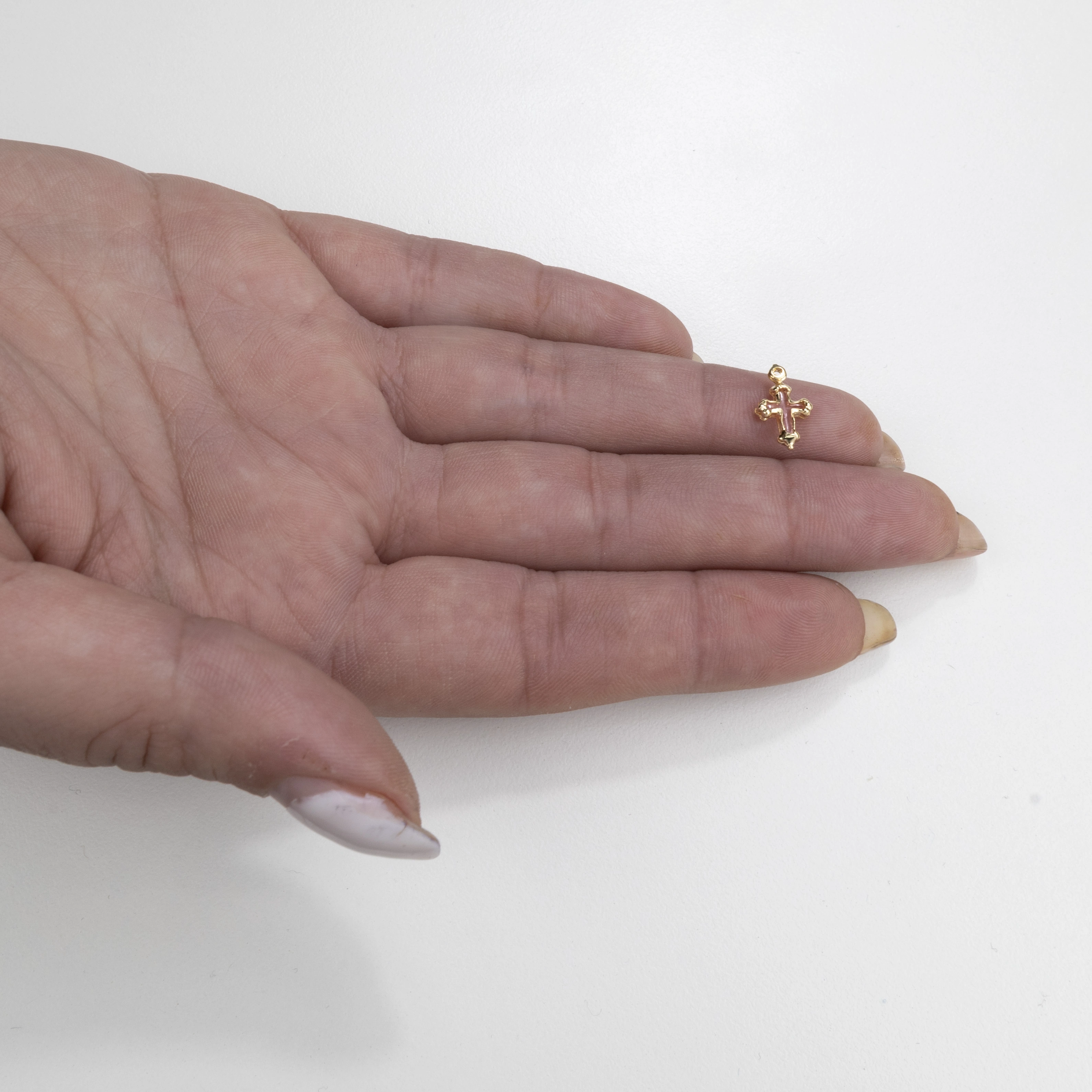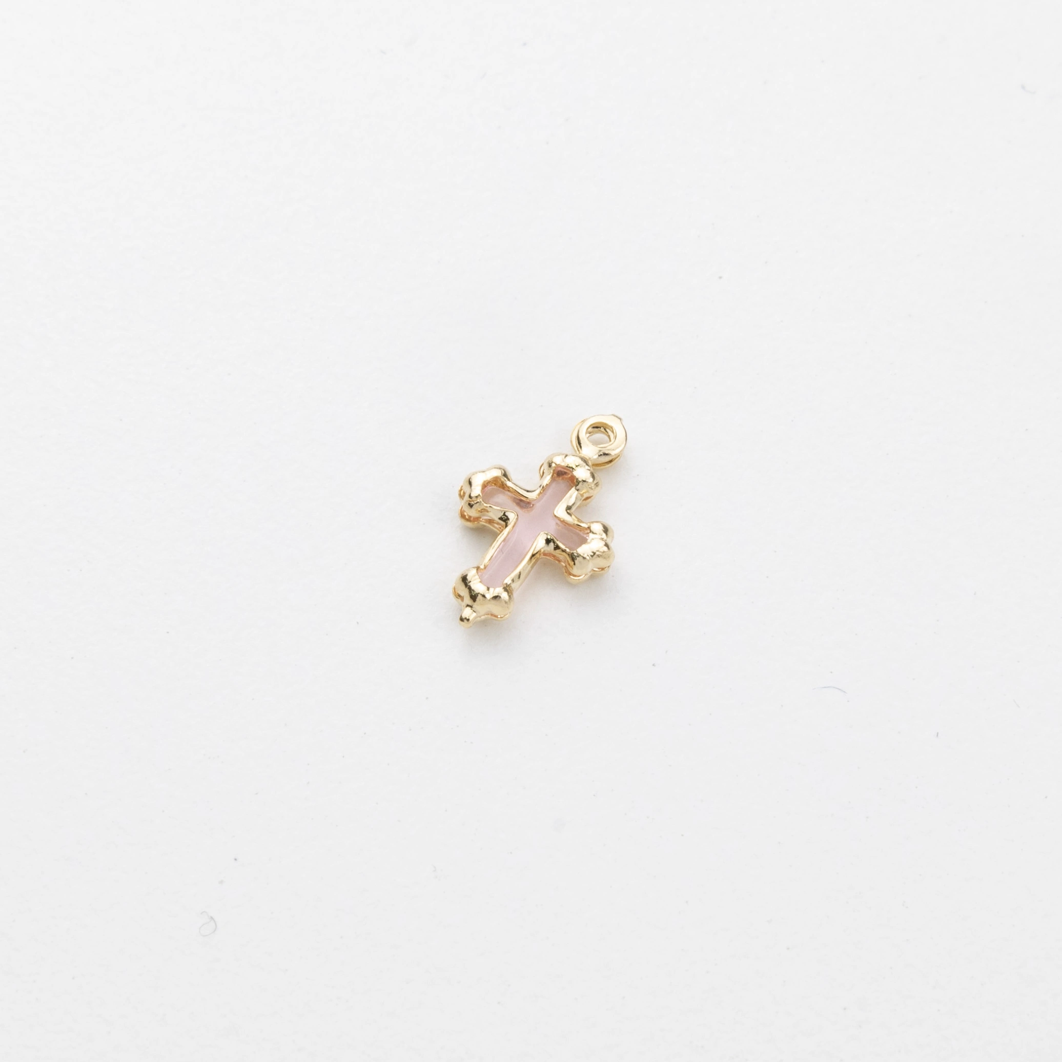 The 'Green Crystal Cross Charm' from Gold Tree Miami radiates with a deep spiritual essence. This exquisite charm showcases a gleaming green crystal at its center, set against a lustrous gold cross backdrop, symbolizing faith and serenity