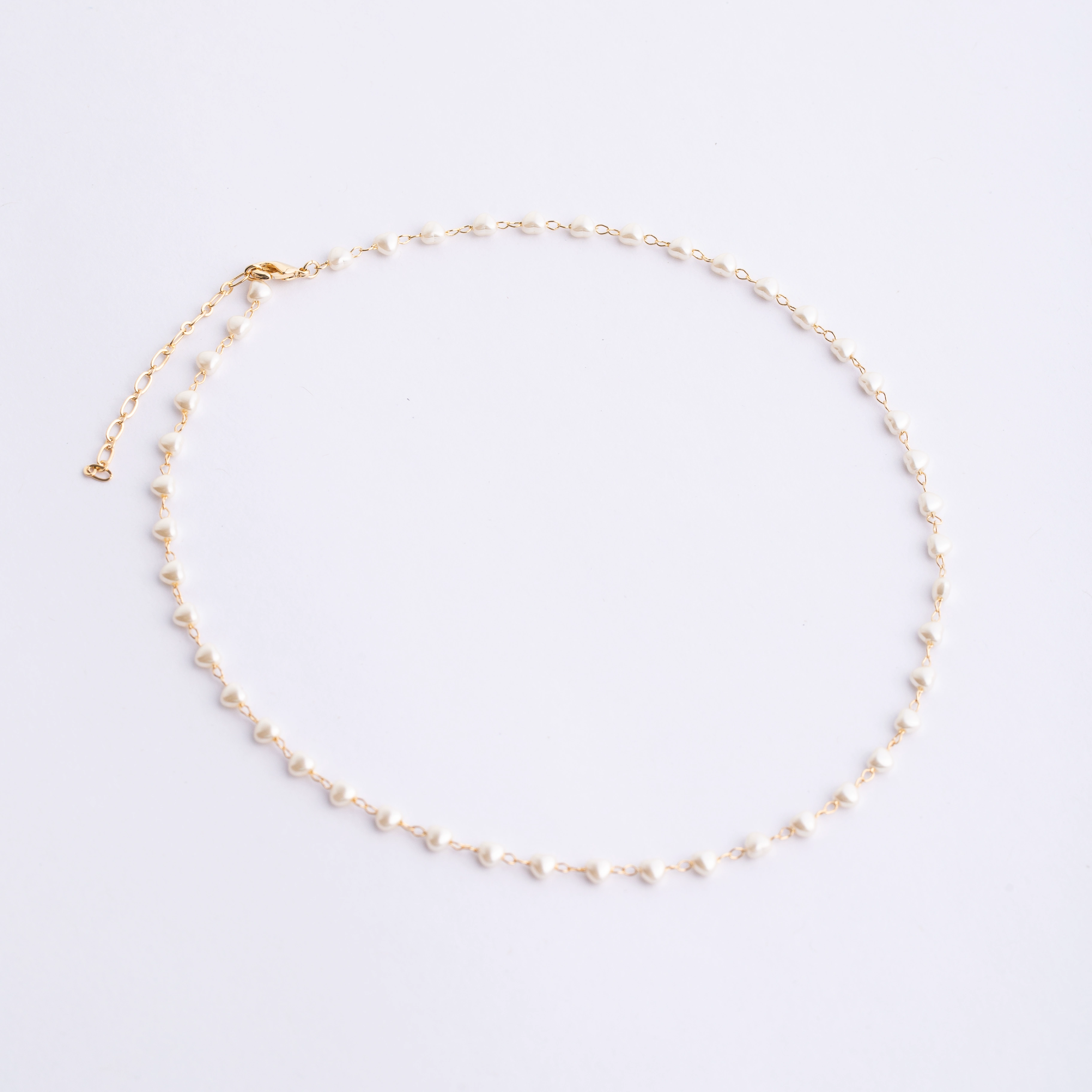 Heart-Shaped Pearl Chain Necklace 16"