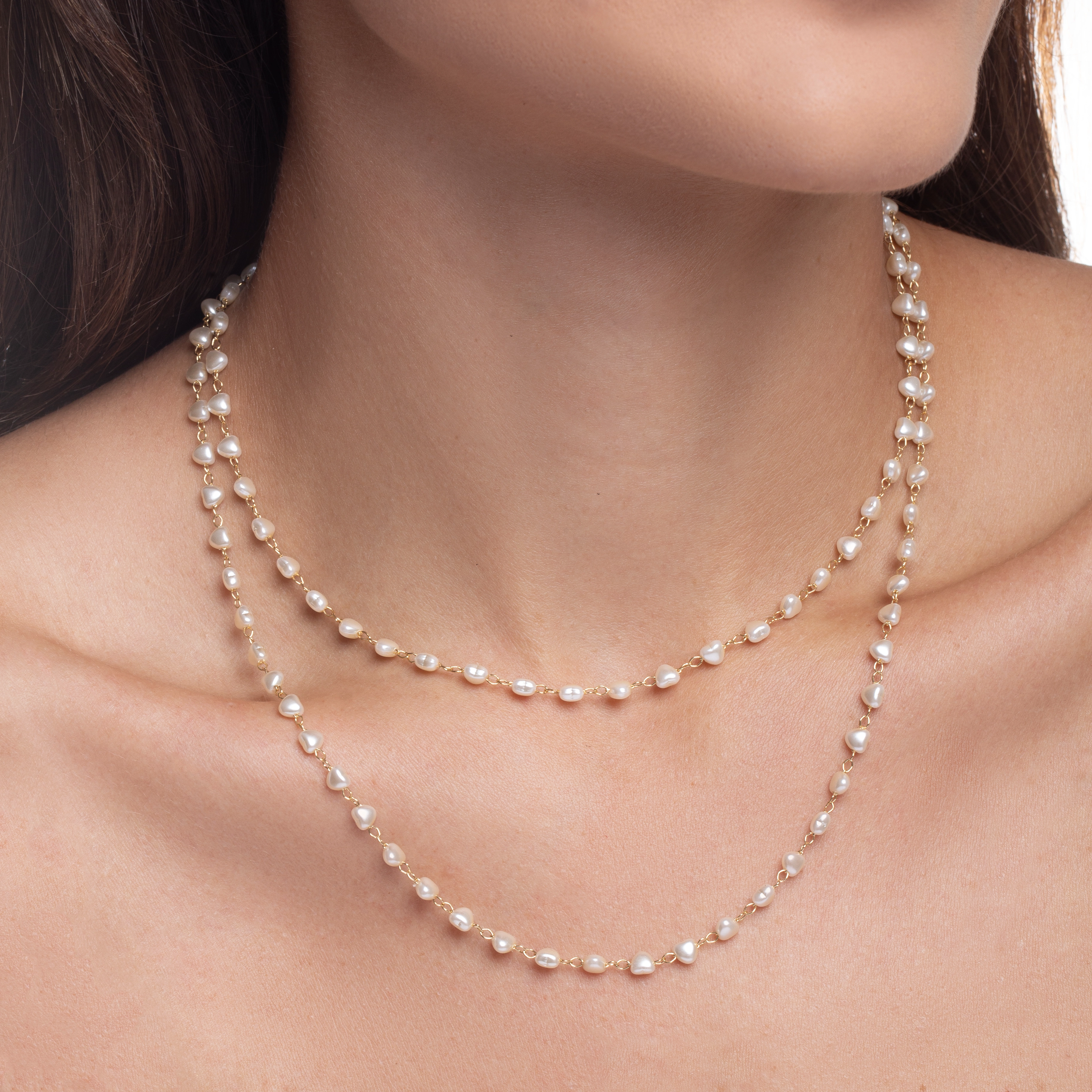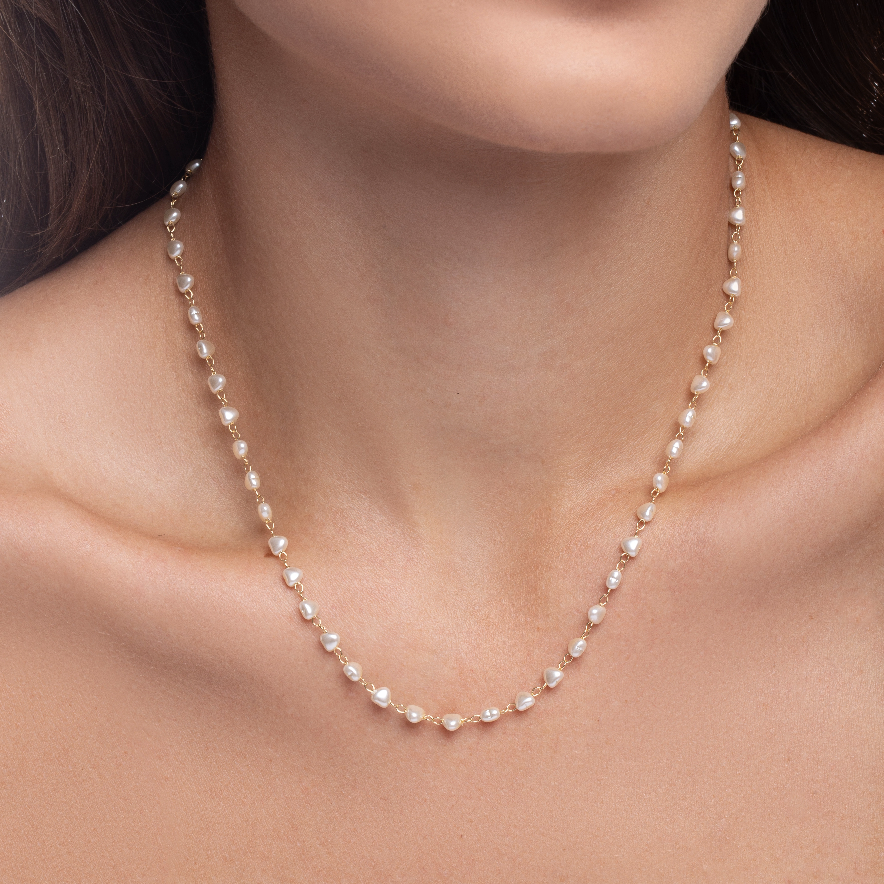 Gold Tree Miami's 'Heart-Shaped Pearl Chain Necklace' is a captivating piece, where the timeless elegance of pearls meets the universal symbol of love. This necklace features delicate heart-shaped pearls, evenly spaced along a dainty chain, offering a romantic twist on the classic pearl necklace