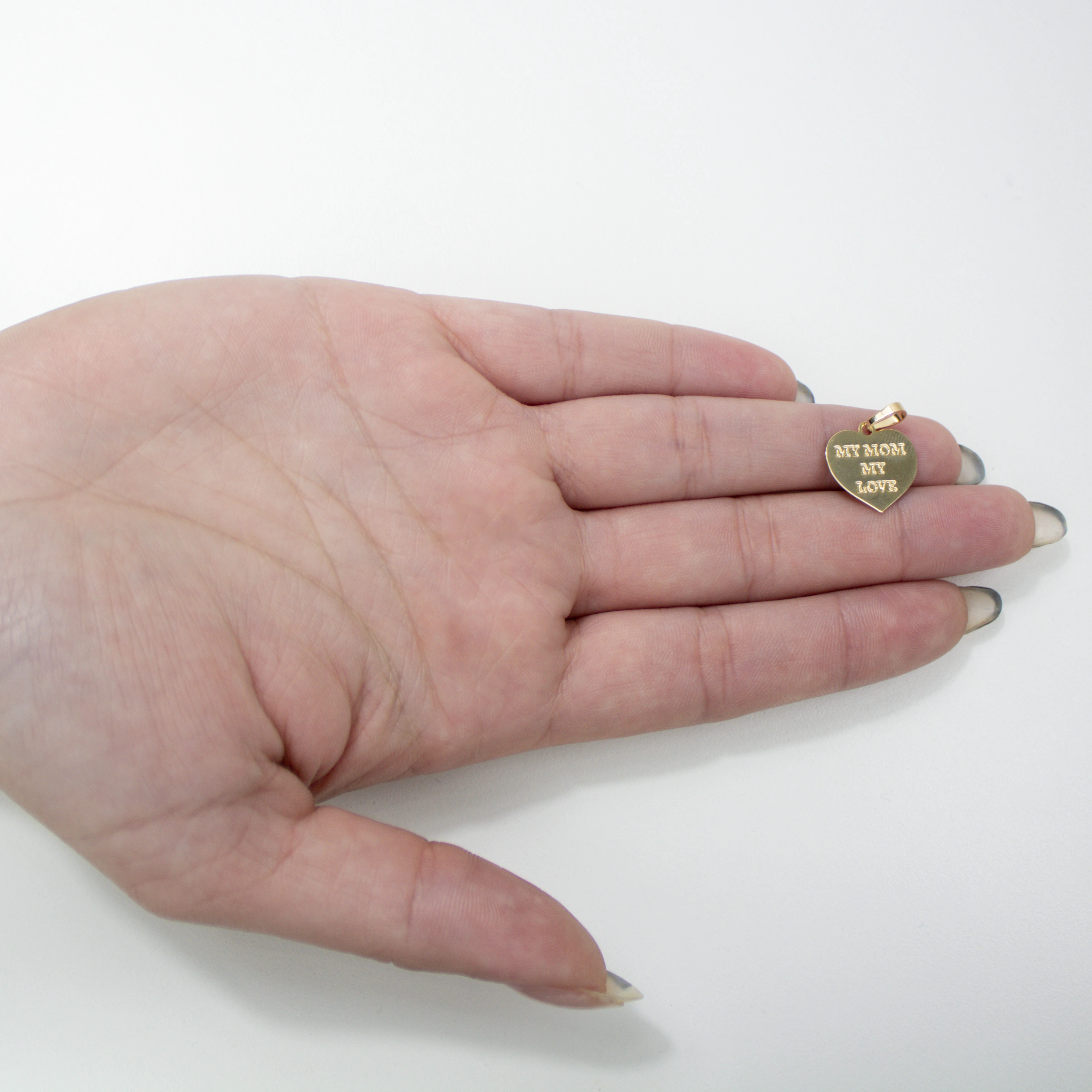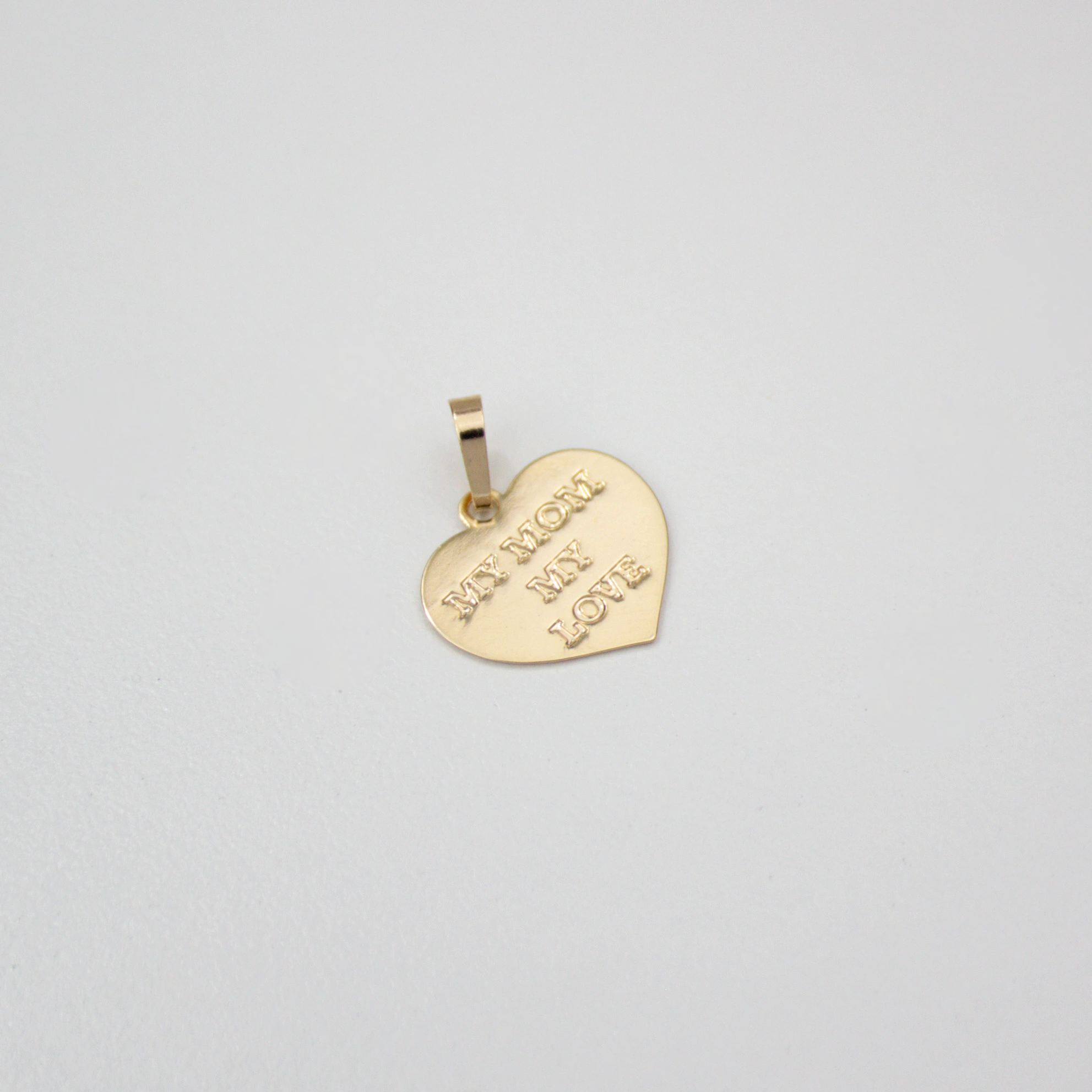 Cherish the heartwarming bond with the Love Tribute Heart Pendant, a timeless piece to celebrate the endless love for your mother. This 18k gold-plated charm features an engraved tribute 'MY MOM MY LOVE', making it a perfect keepsake or gift. Its classic heart shape and elegant script pay homage to the woman who means the world to you
